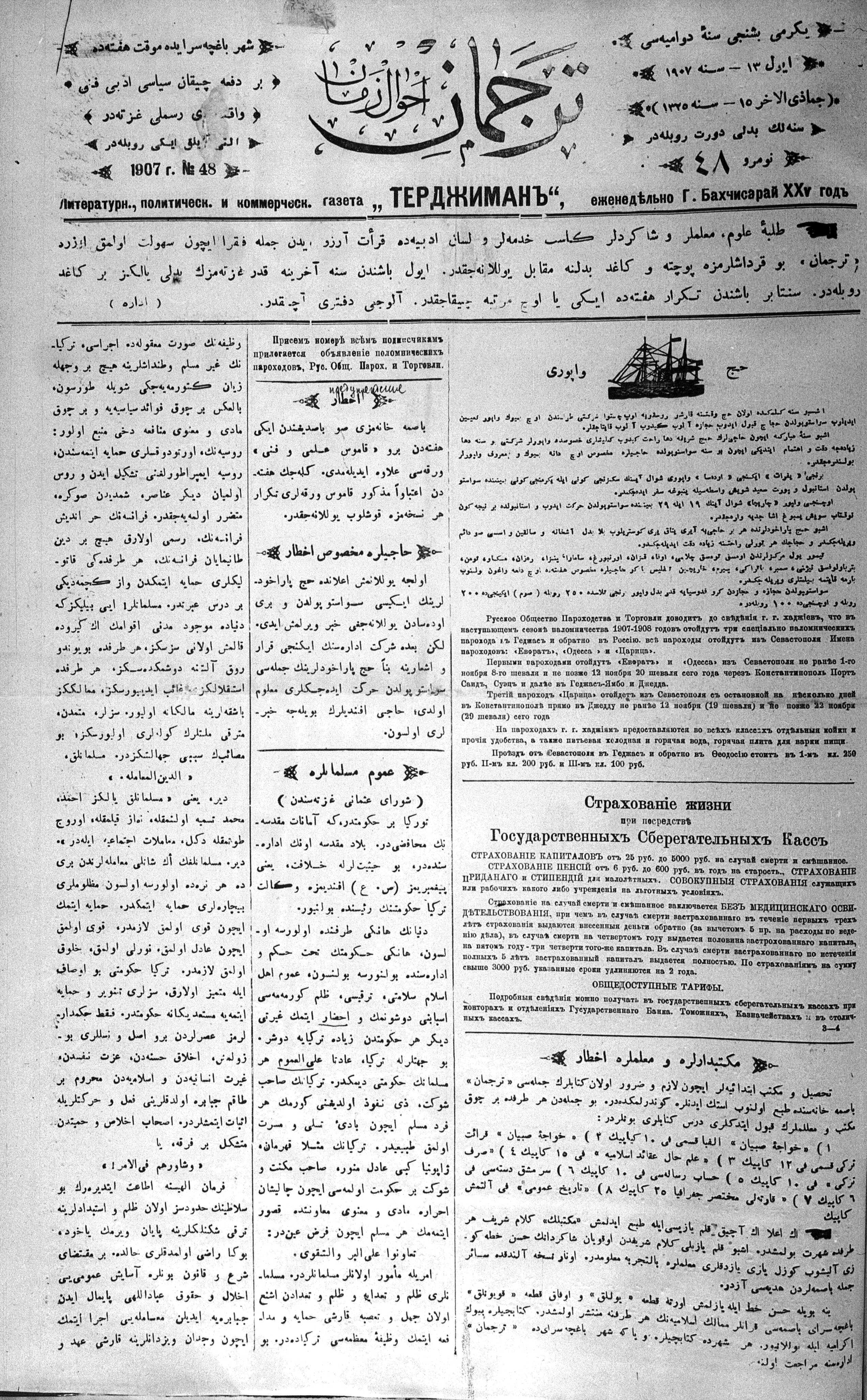 Tercüman, 13 July 1907 Year 25 No 48