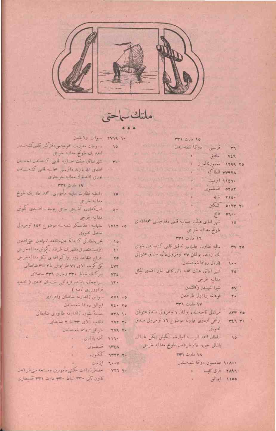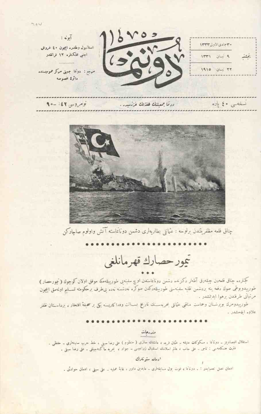 The name of the periodical was published under the following titles in different periods: Donanma: Donanma Cemiyetinin haftalık gazetesi; Donanma: istikbal denizlerdedir; Donanma: şimdilik ayda bir defa neşrolunur; Donanma: ayda bir defa neşr olunur, musavver, ahlaki, edebi, tarihi, fenni mecmuadır.