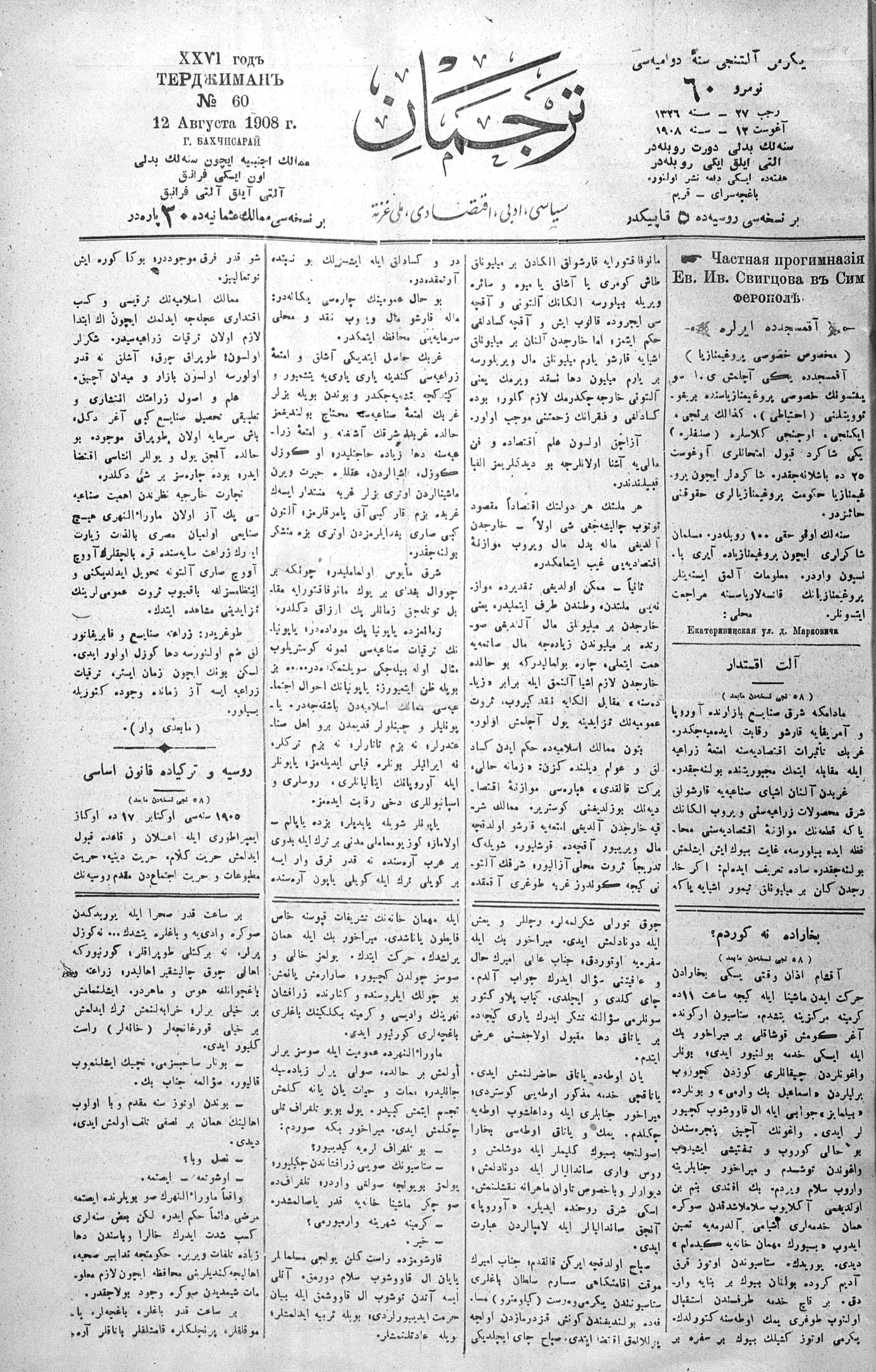 Turkish-Russian newspaper published in Crimea by İsmail Gaspıralı.