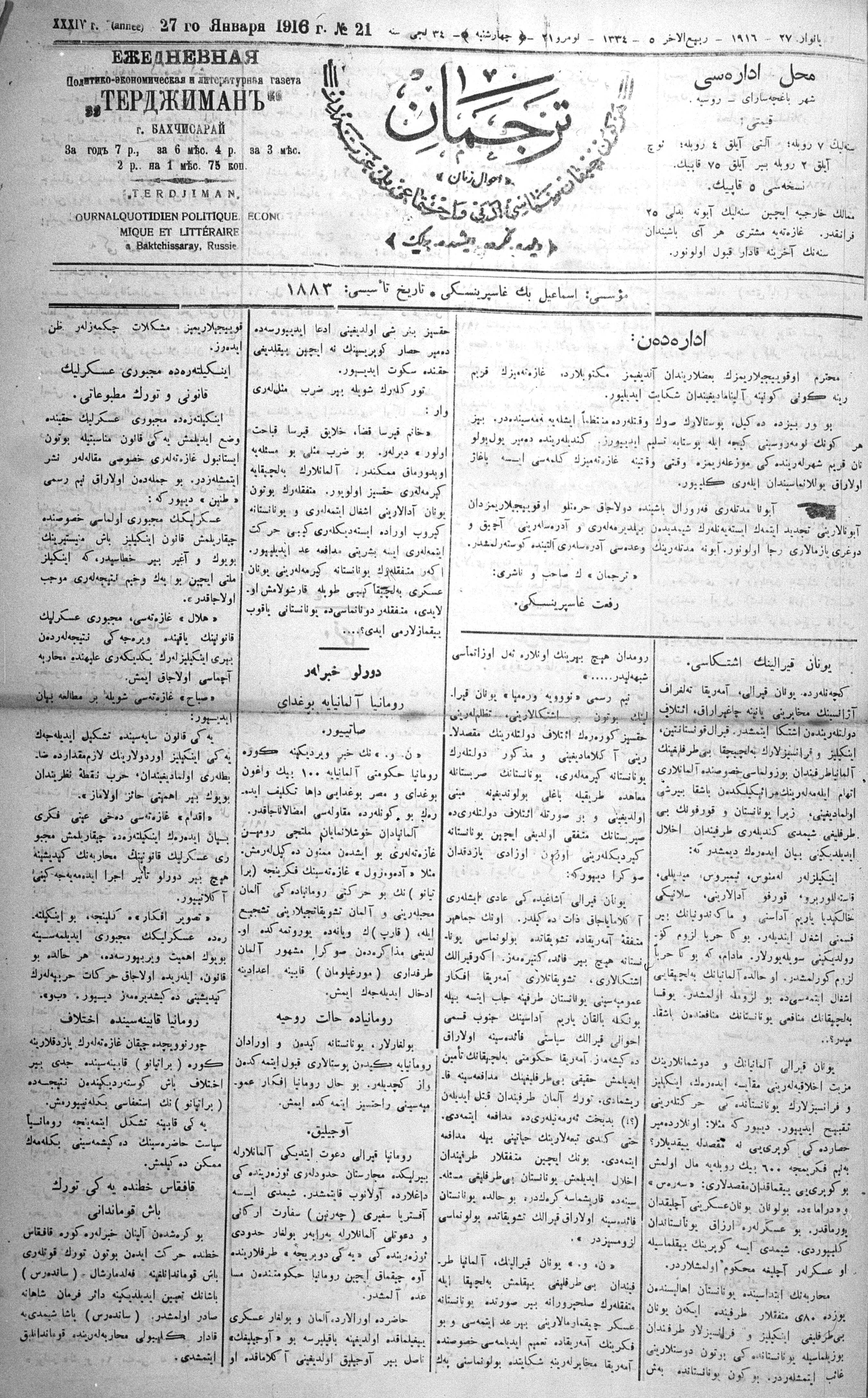 Turkish-Russian newspaper published in Crimea by İsmail Gaspıralı.