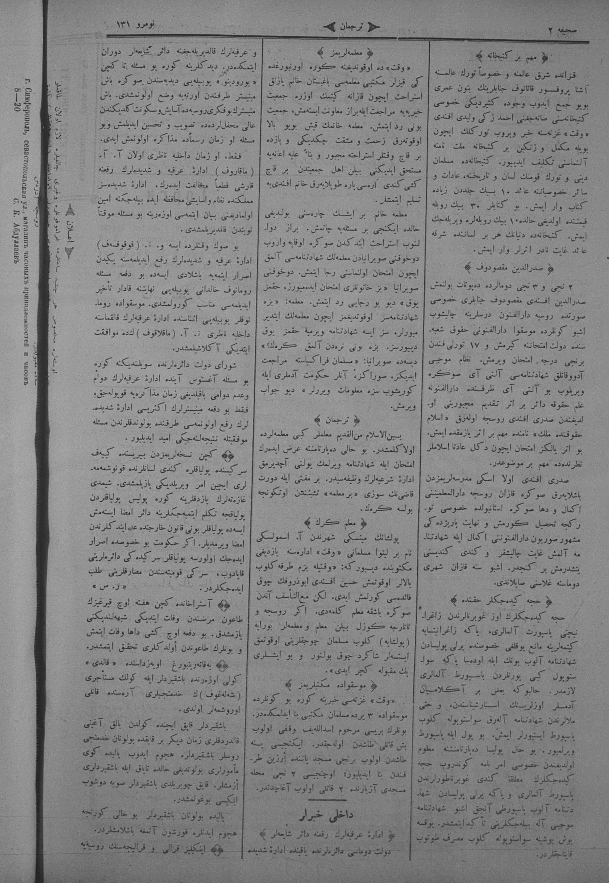 Turkish-Russian newspaper published in Crimea by İsmail Gaspıralı.