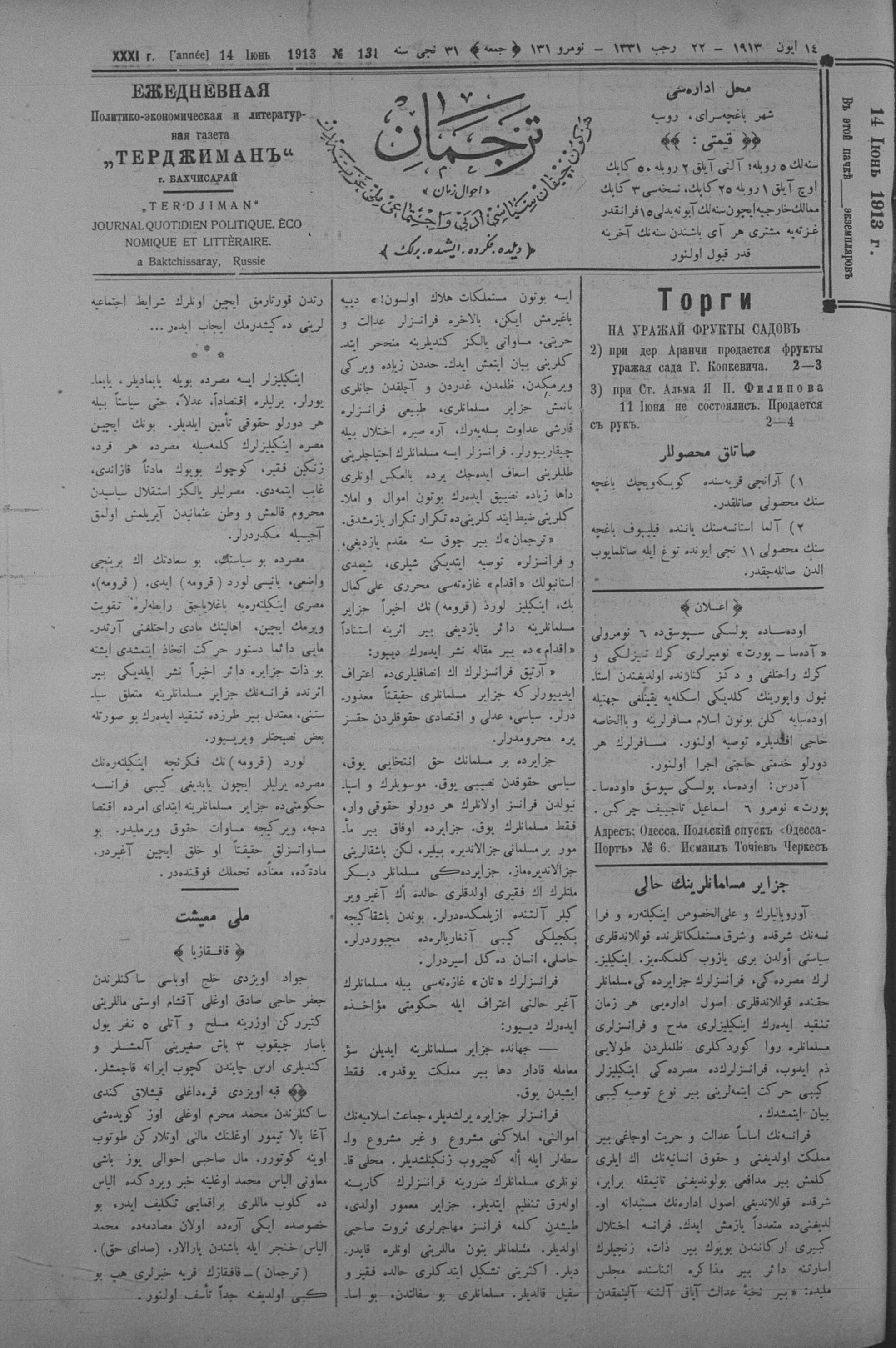 Tercüman, 14 June 1913 Year 31 No 131