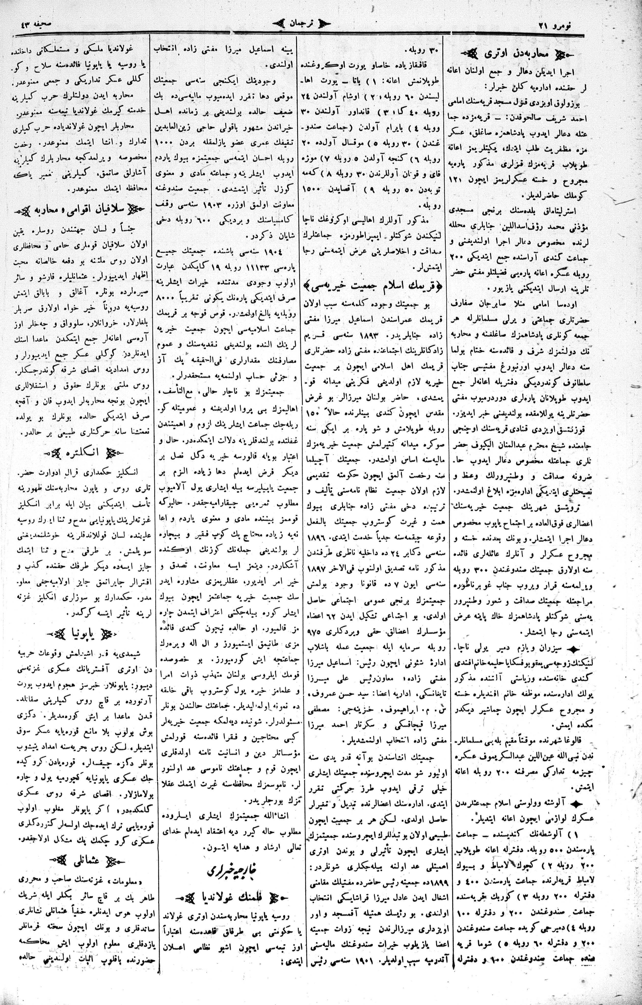 The name of the newspaper changed to Tercüman-ı Ahval-i Zaman in 1905. In 1909, it started to be published under its first name, Tercüman.