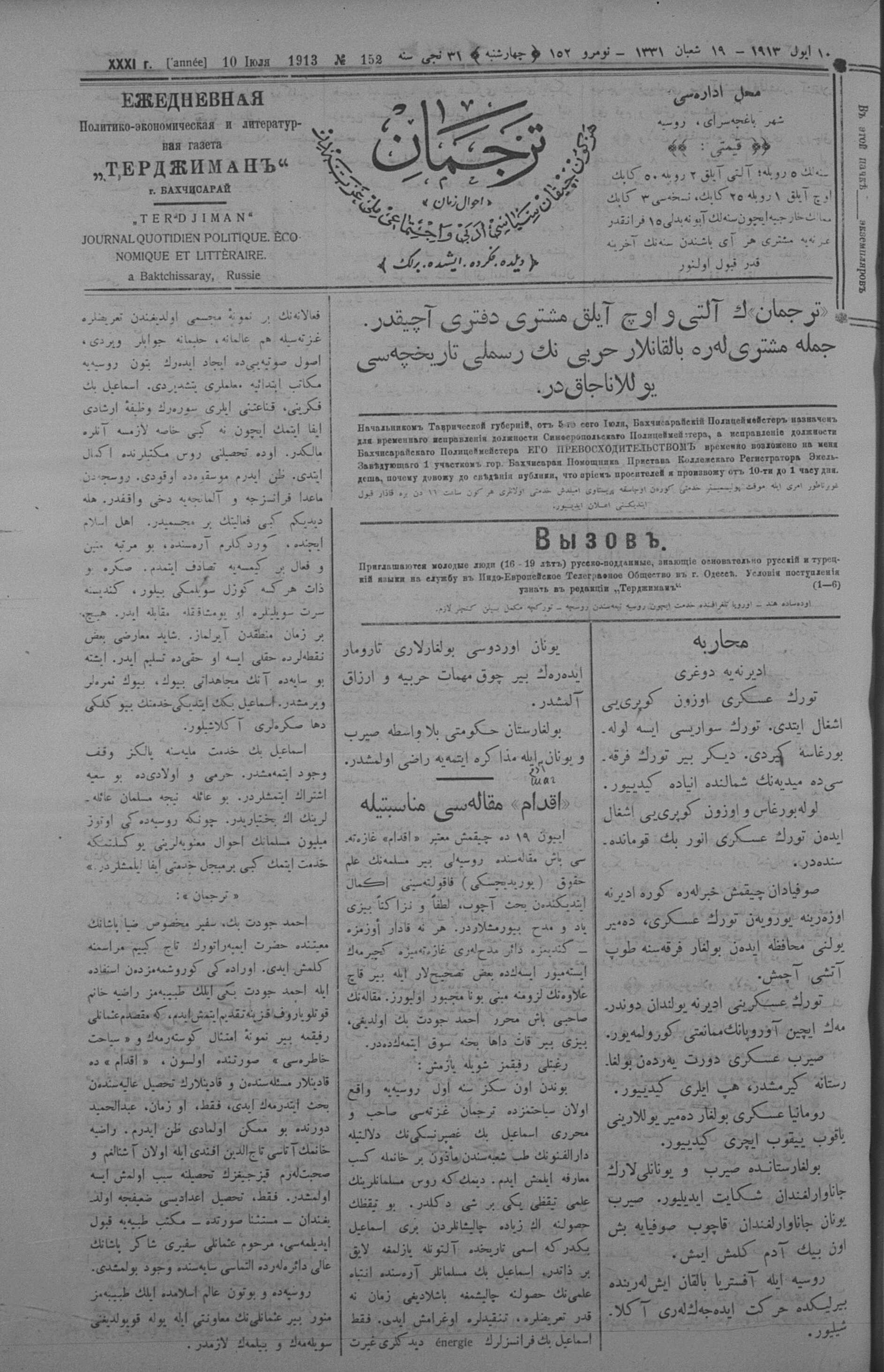Tercüman, 10 July 1913 Year 31 No 152
