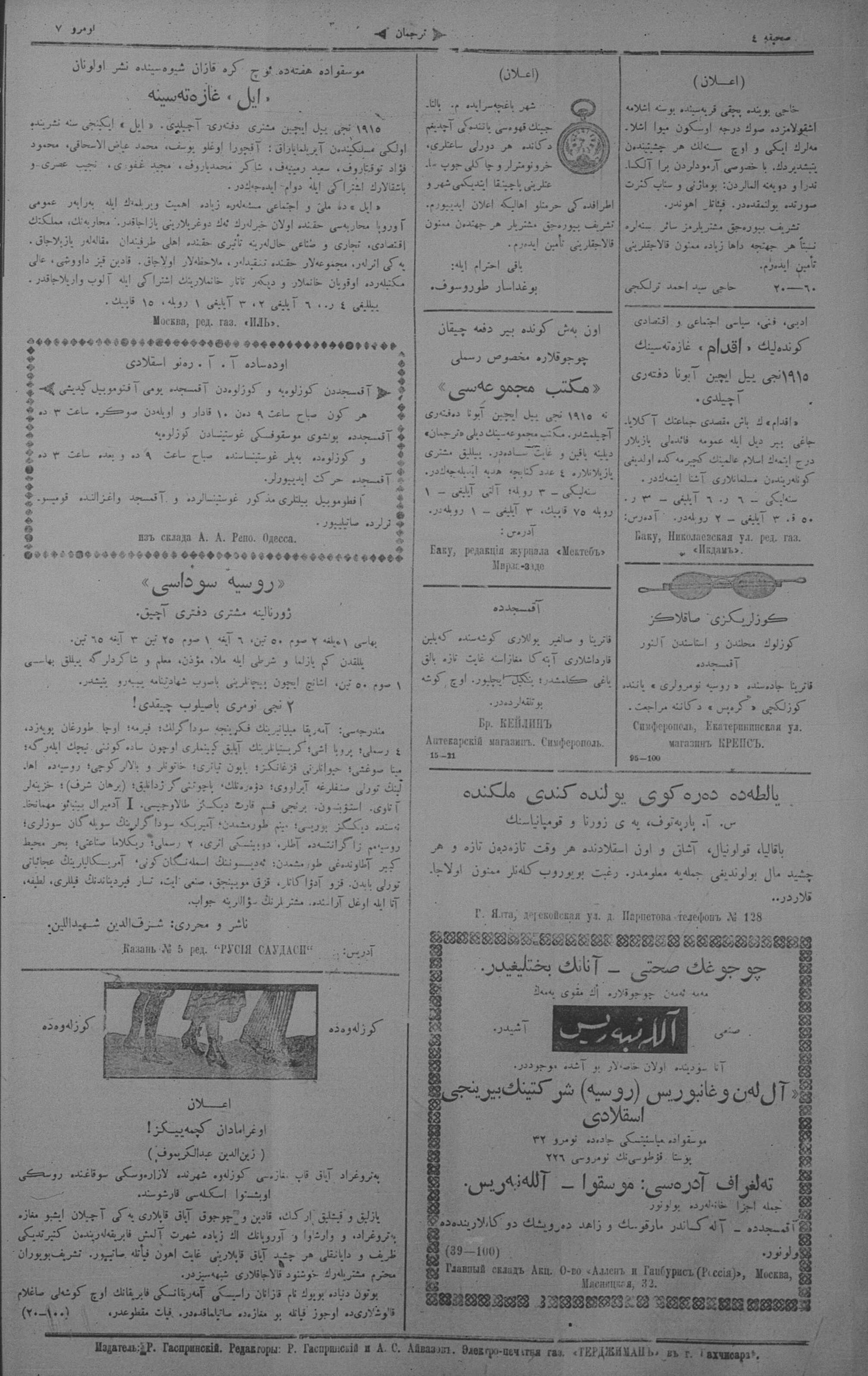 Turkish-Russian newspaper published in Crimea by İsmail Gaspıralı.