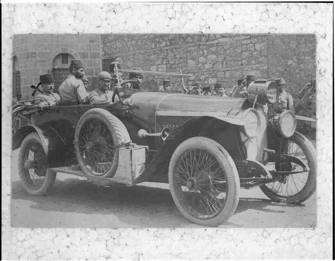 Fahreddin Paşa maiyetindeki subaylar ve şoförü er Tevfik ile arabasında