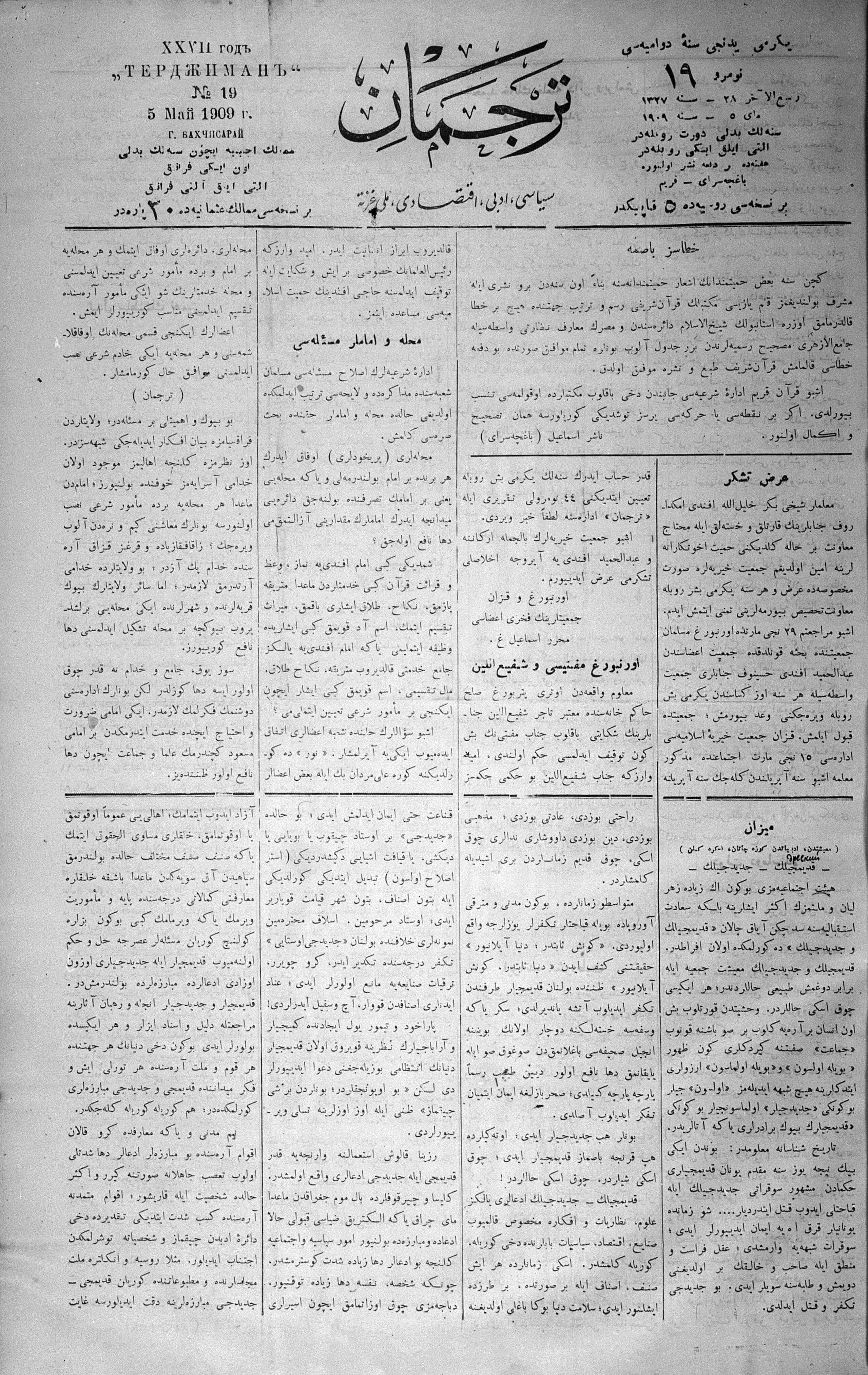 Tercüman, 05 May 1909 Year 27 No 19