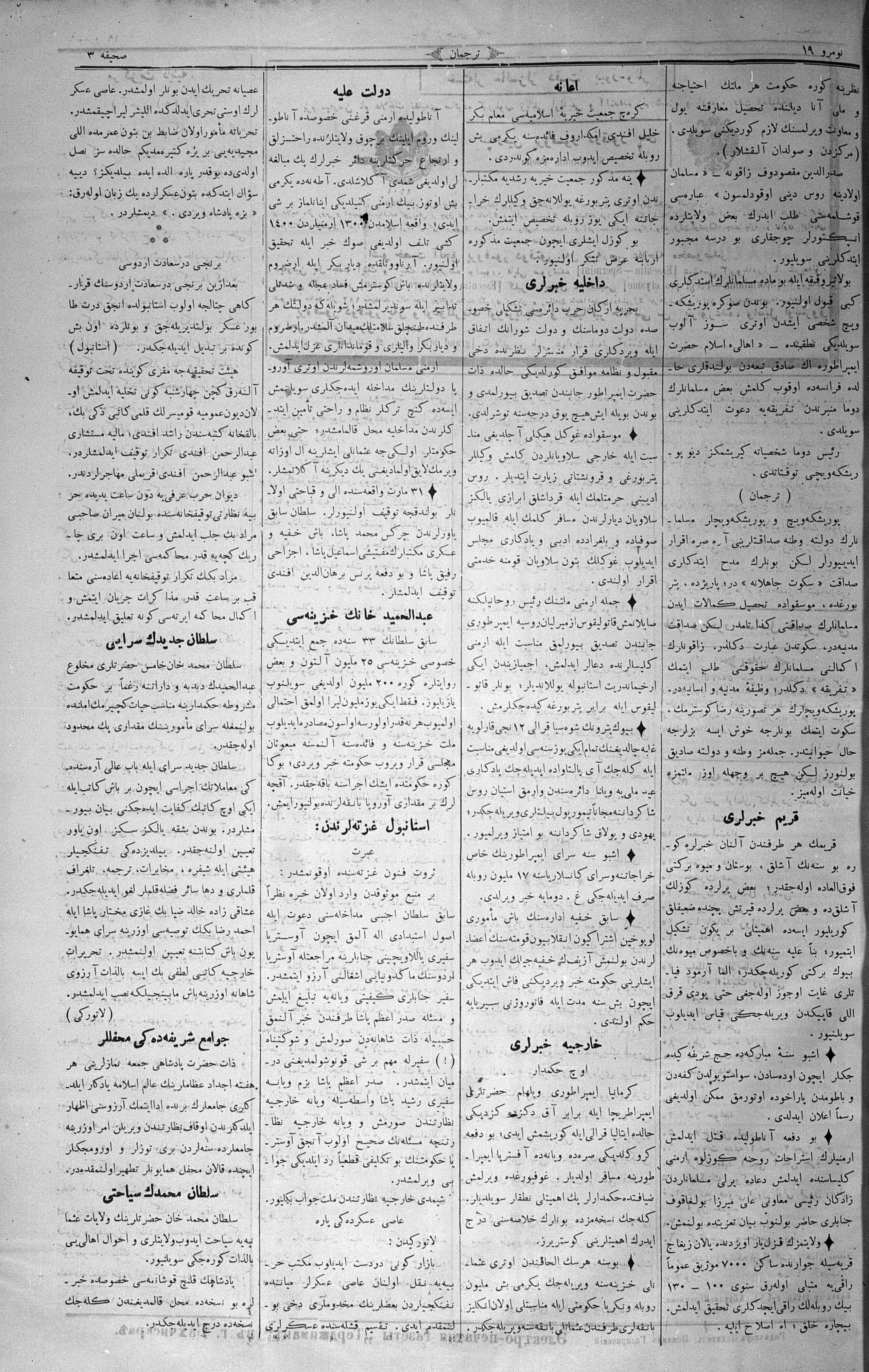 The name of the newspaper changed to Tercüman-ı Ahval-i Zaman in 1905. In 1909, it started to be published under its first name, Tercüman.