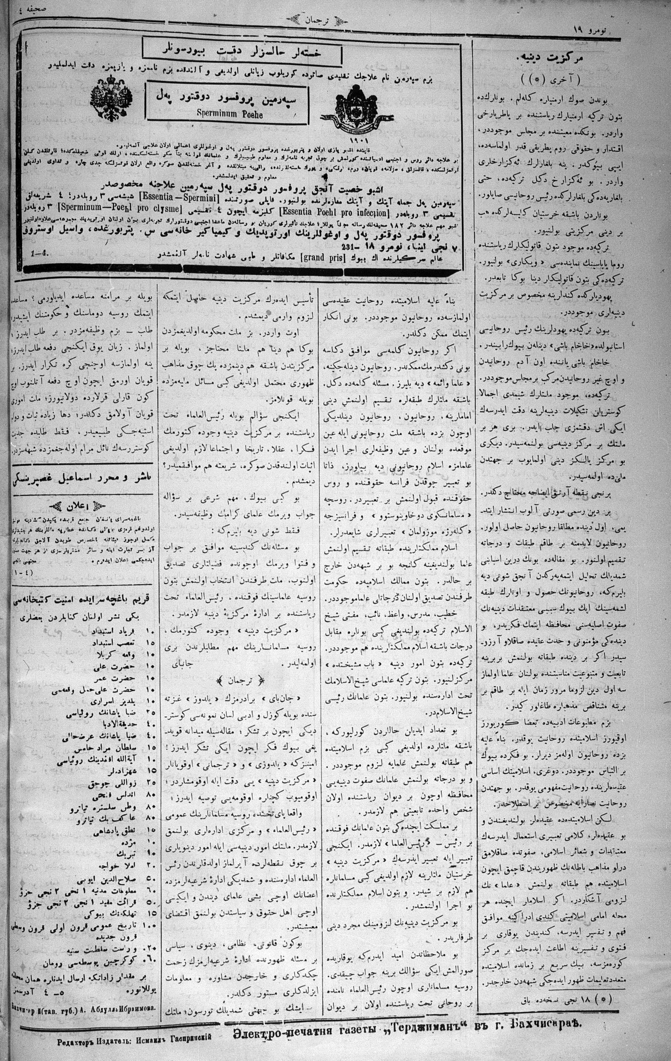 Turkish-Russian newspaper published in Crimea by İsmail Gaspıralı.