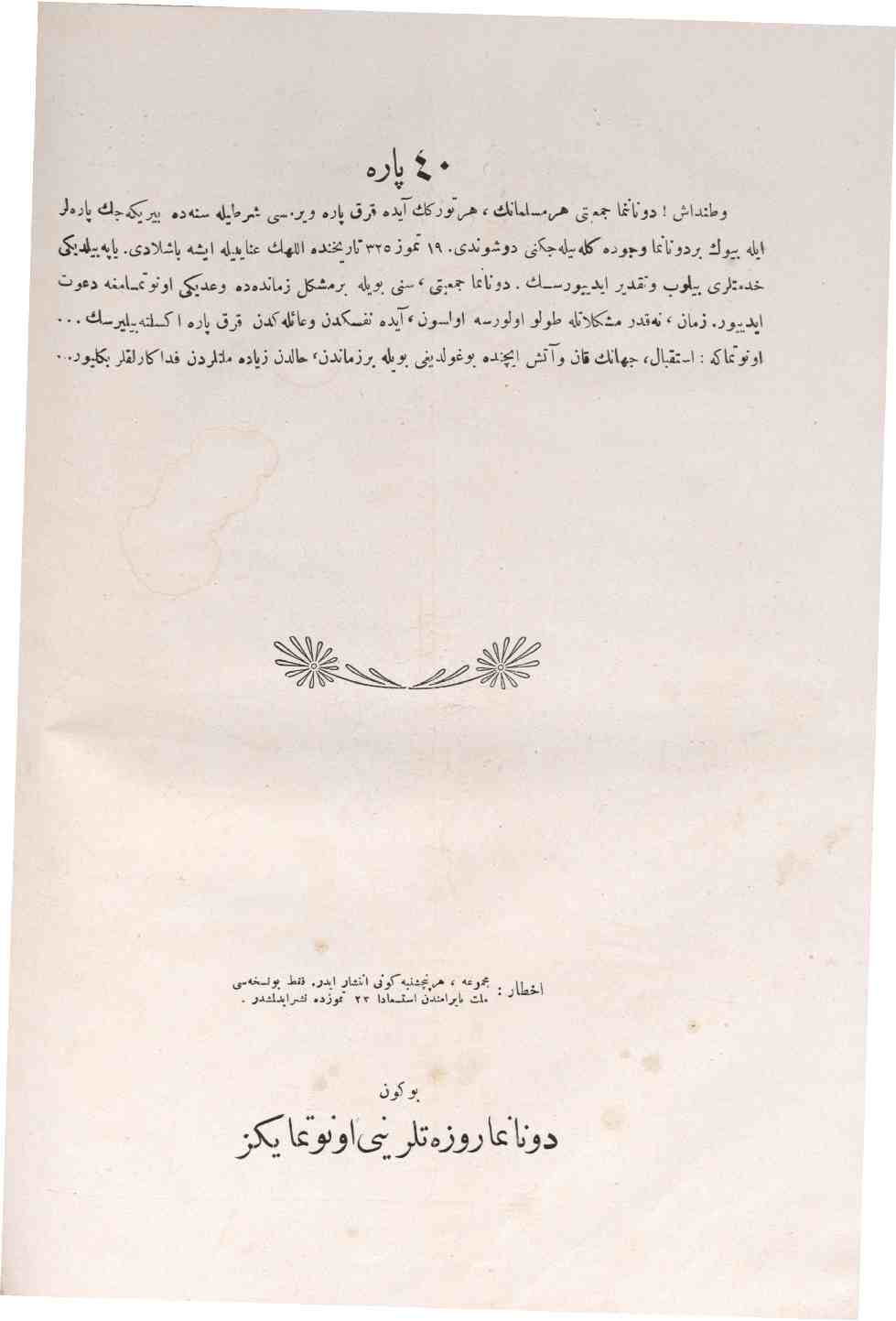 The name of the periodical was published under the following titles in different periods: Donanma: Donanma Cemiyetinin haftalık gazetesi; Donanma: istikbal denizlerdedir; Donanma: şimdilik ayda bir defa neşrolunur; Donanma: ayda bir defa neşr olunur, musavver, ahlaki, edebi, tarihi, fenni mecmuadır.