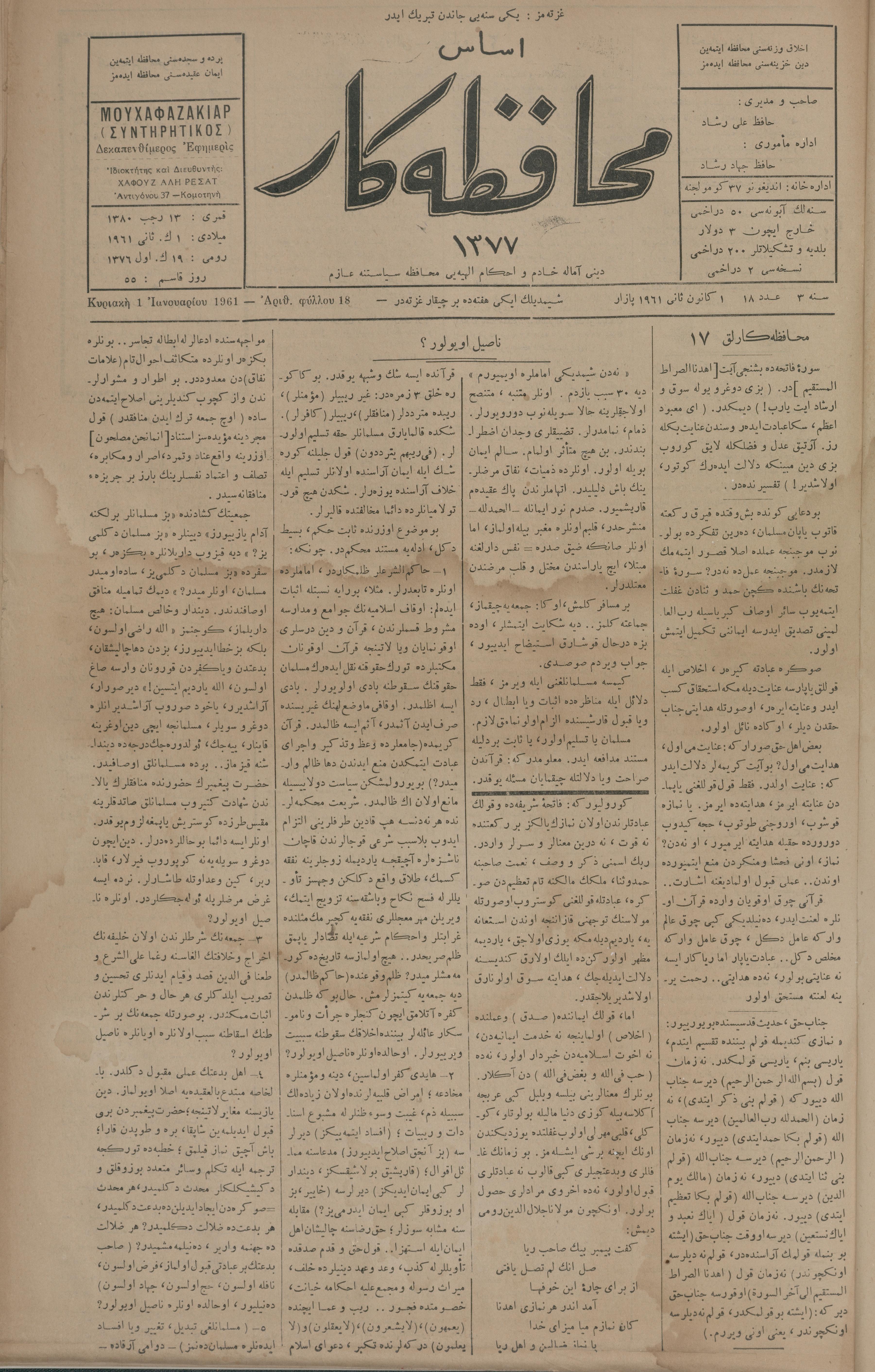 Esas muhafazakâr 1377, 1 Ocak 1961 Sene 3 Aded 18