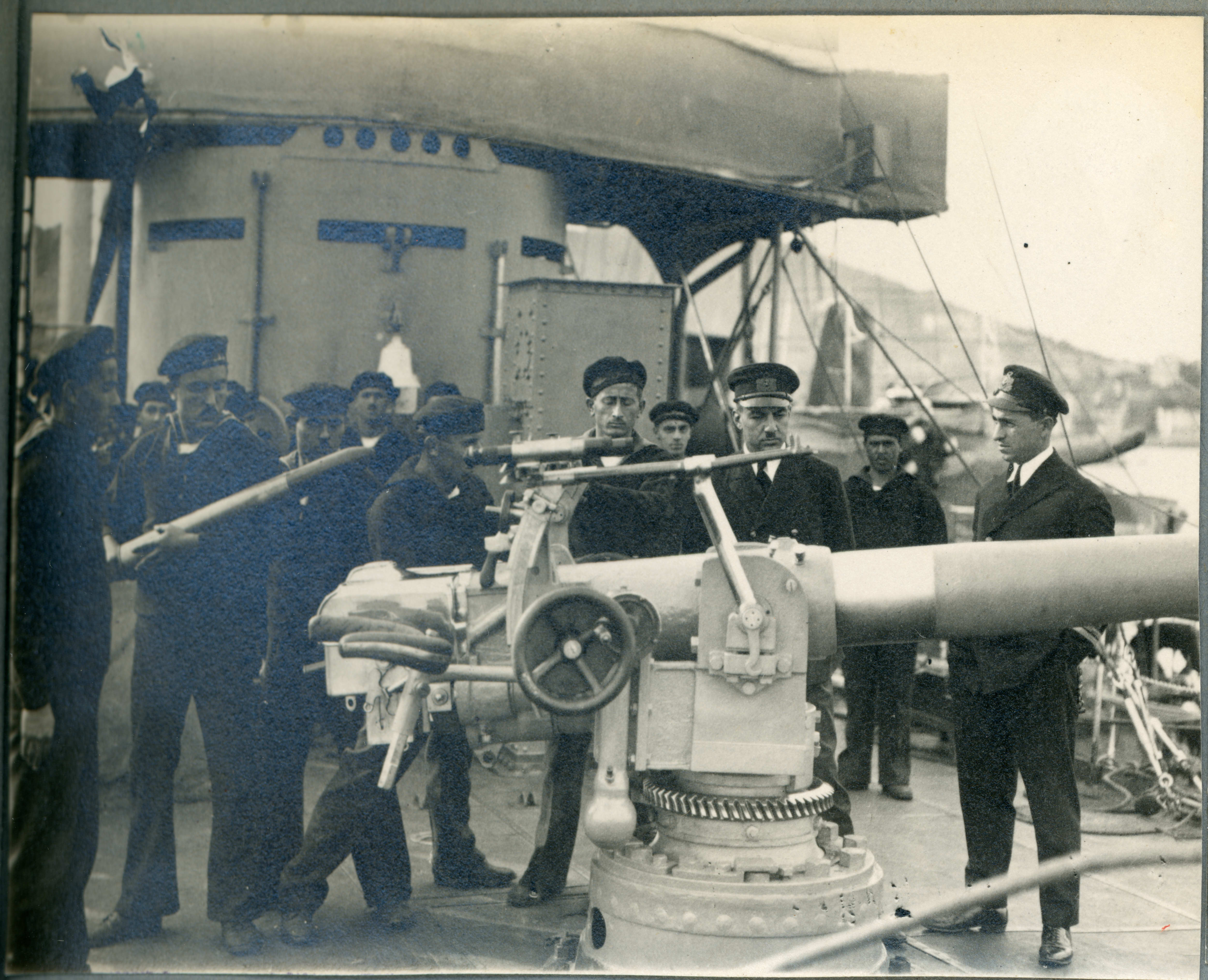 Türk donanma gemilerinden birinin güvertesinde topa mermi sürülürken