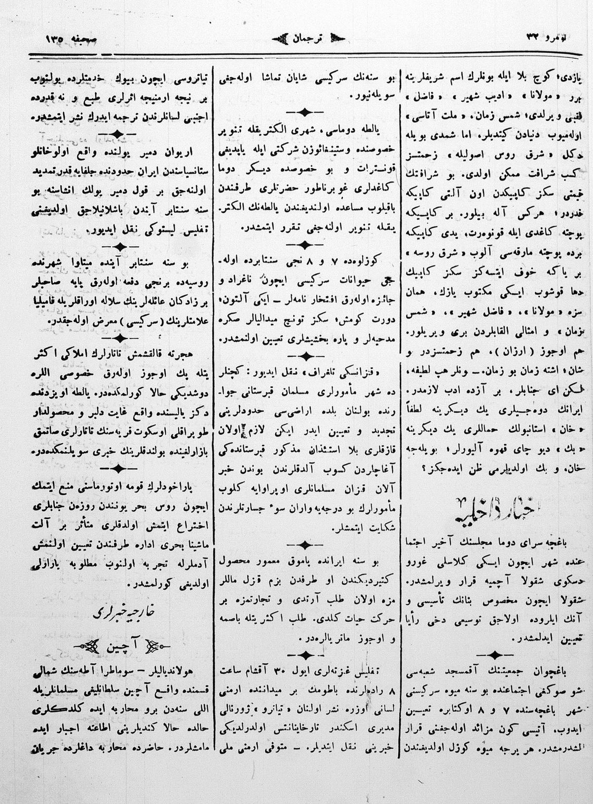 The name of the newspaper changed to Tercüman-ı Ahval-i Zaman in 1905. In 1909, it started to be published under its first name, Tercüman.