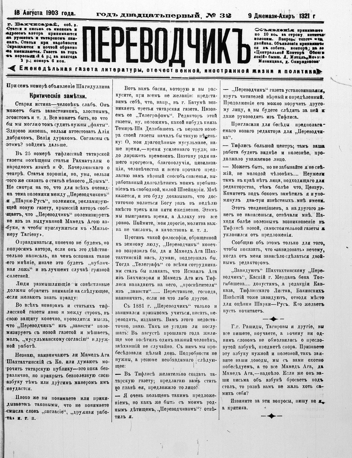 Tercüman, 18 August 1903 Year 21 No 32