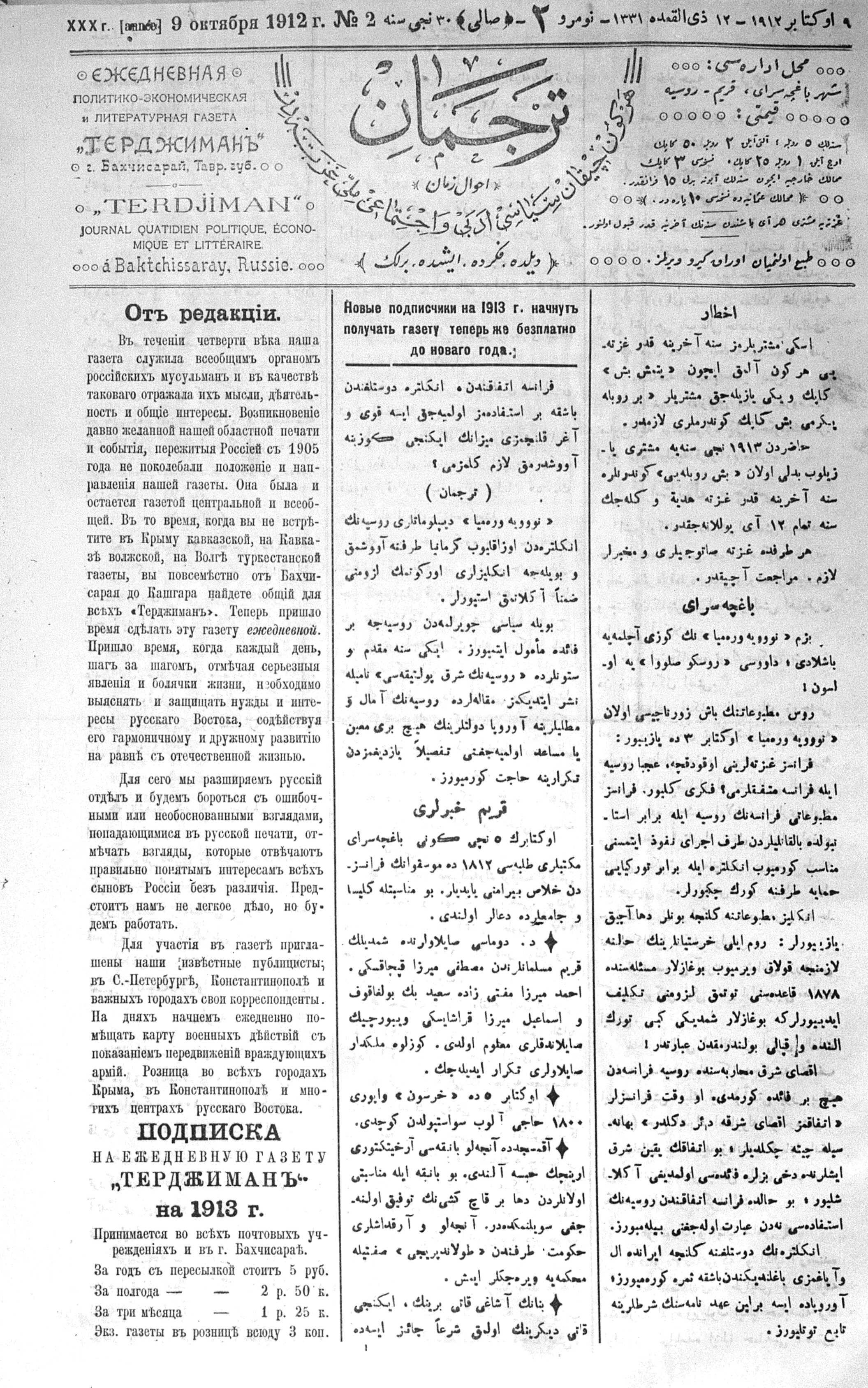 Tercüman, 09 October 1912 Year 30 No 2