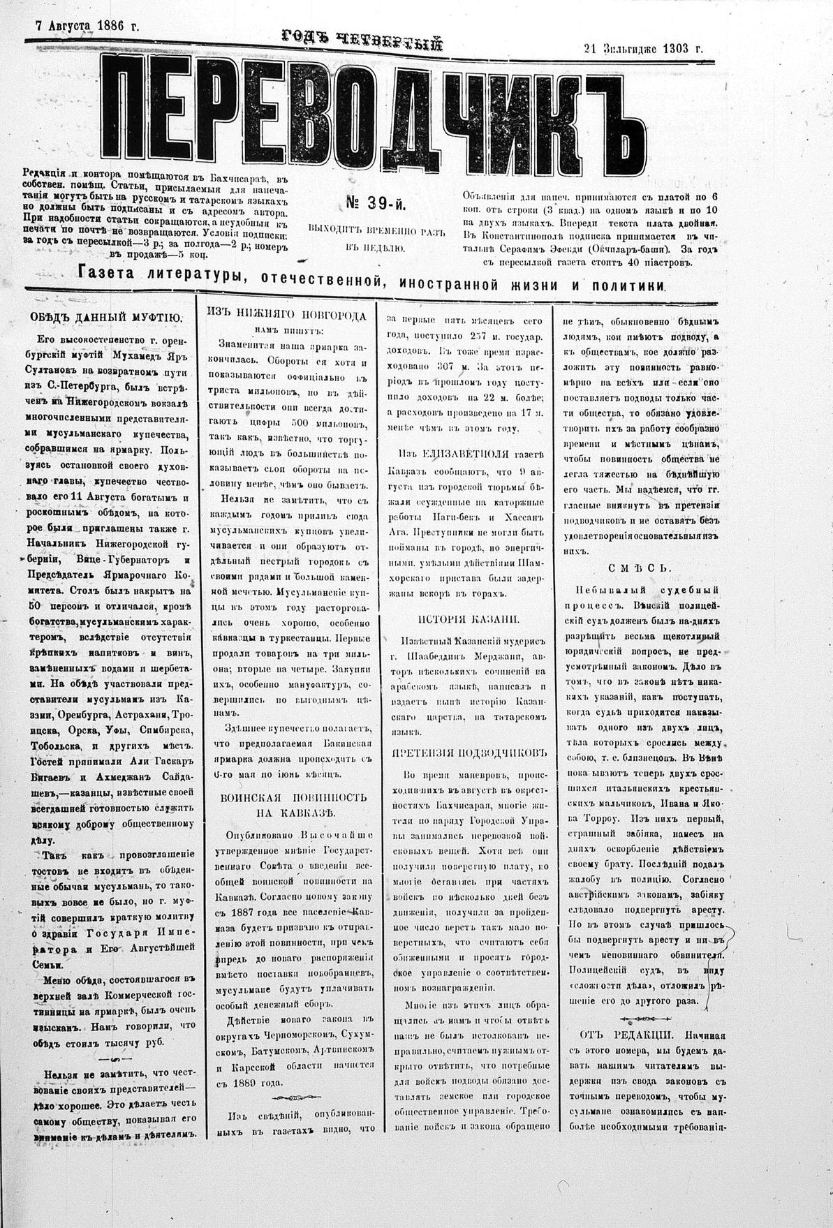 Turkish-Russian newspaper published in Crimea by İsmail Gaspıralı.