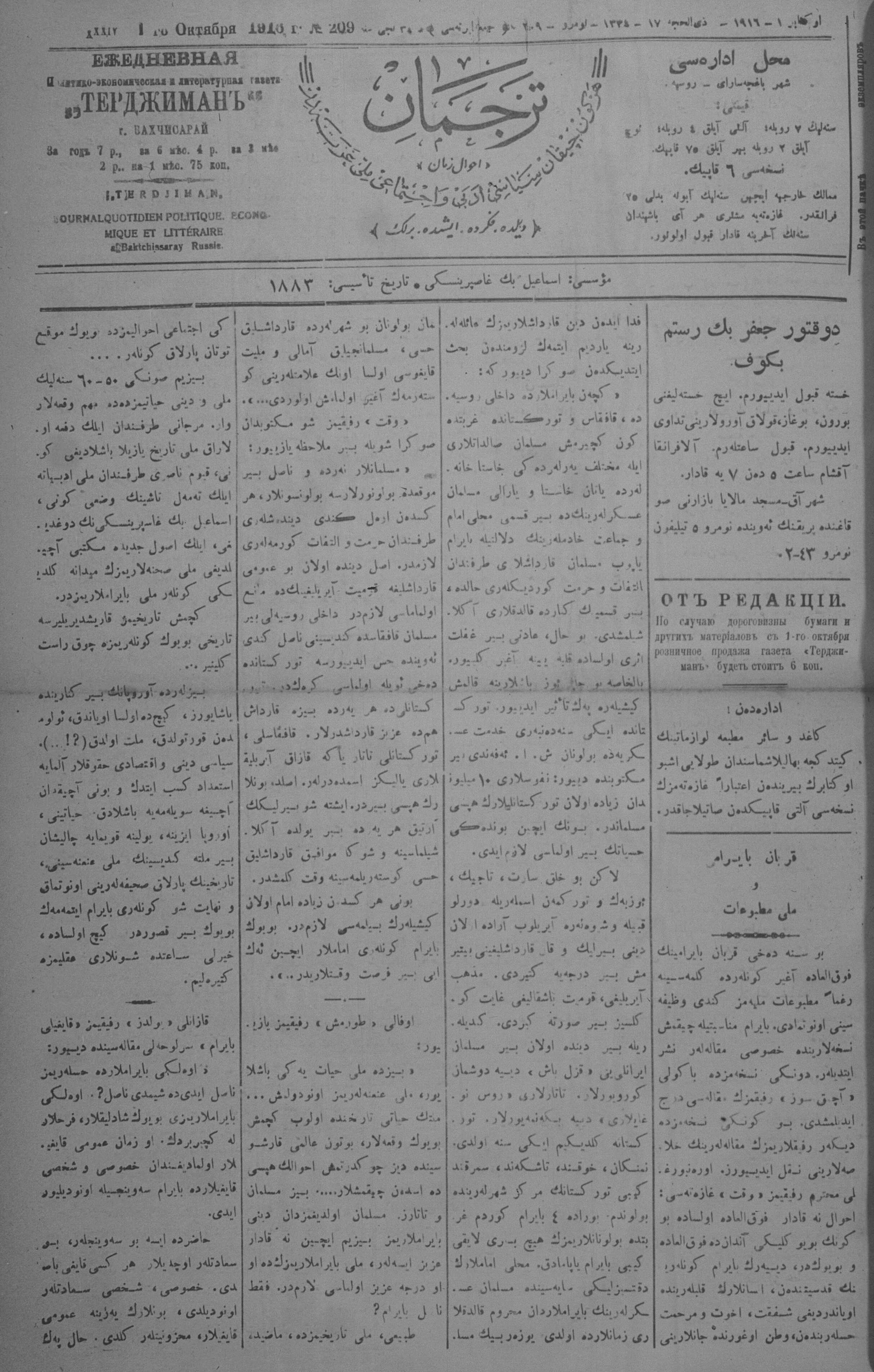 Tercüman, 01 October 1916 Year 34 No 209
