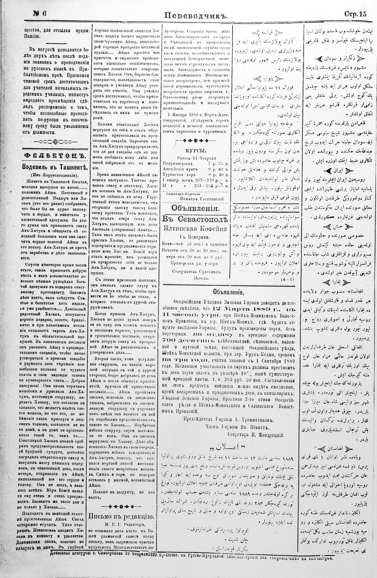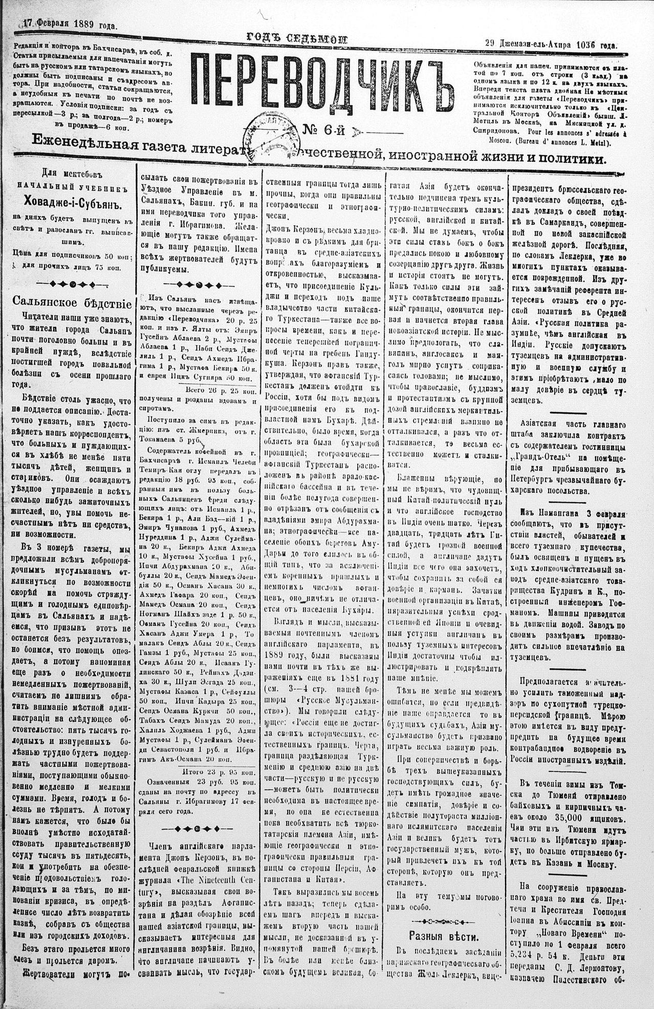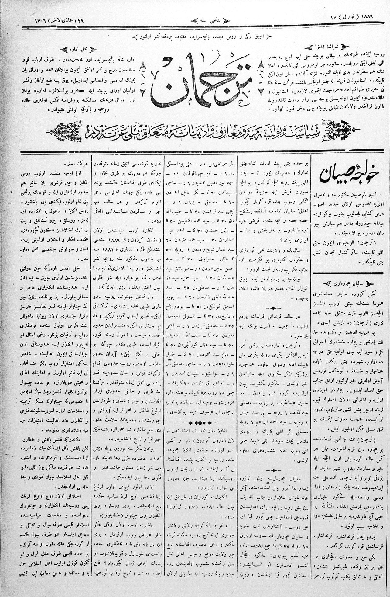 Tercüman, 17 February 1889 Year 7 No 6