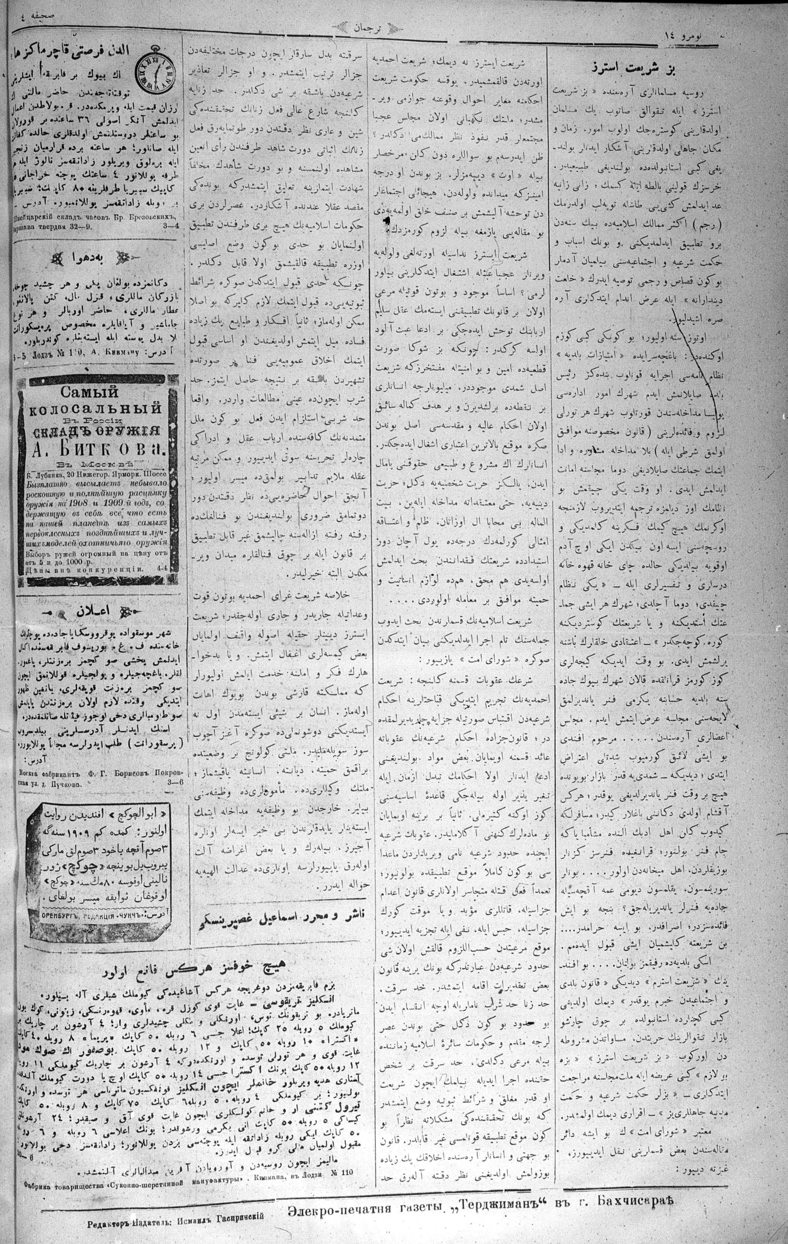 Turkish-Russian newspaper published in Crimea by İsmail Gaspıralı.