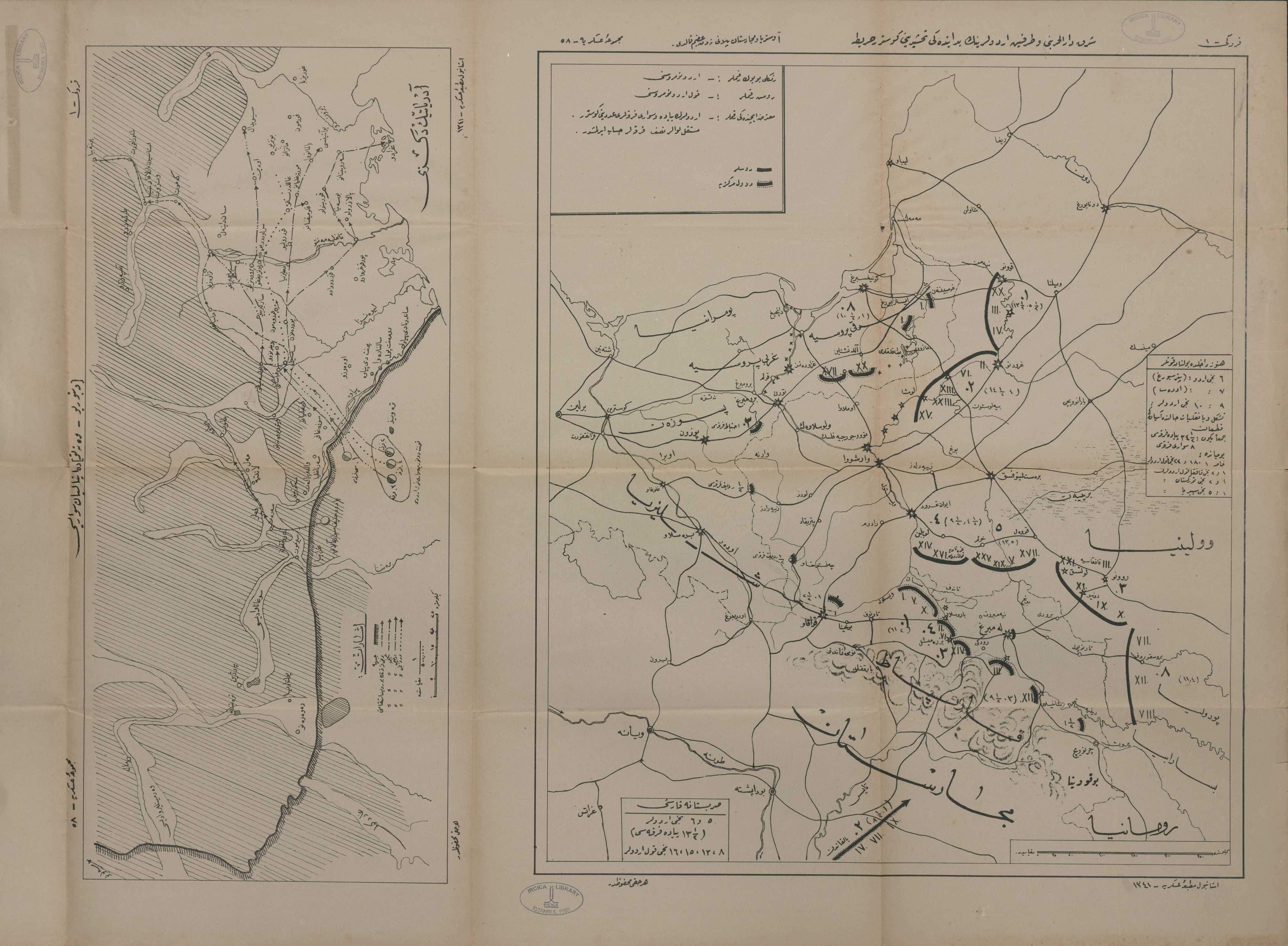 With: Kroki-1: Şark Darülharbi ve Tarafeyn ordularının bidayetteki tahşidini gösterir harita, Avusturya ve Macaristan planı neden akim kaldı.-Kroki-1: Ditoryo ve Tetova`da İtalyan süvarisi.