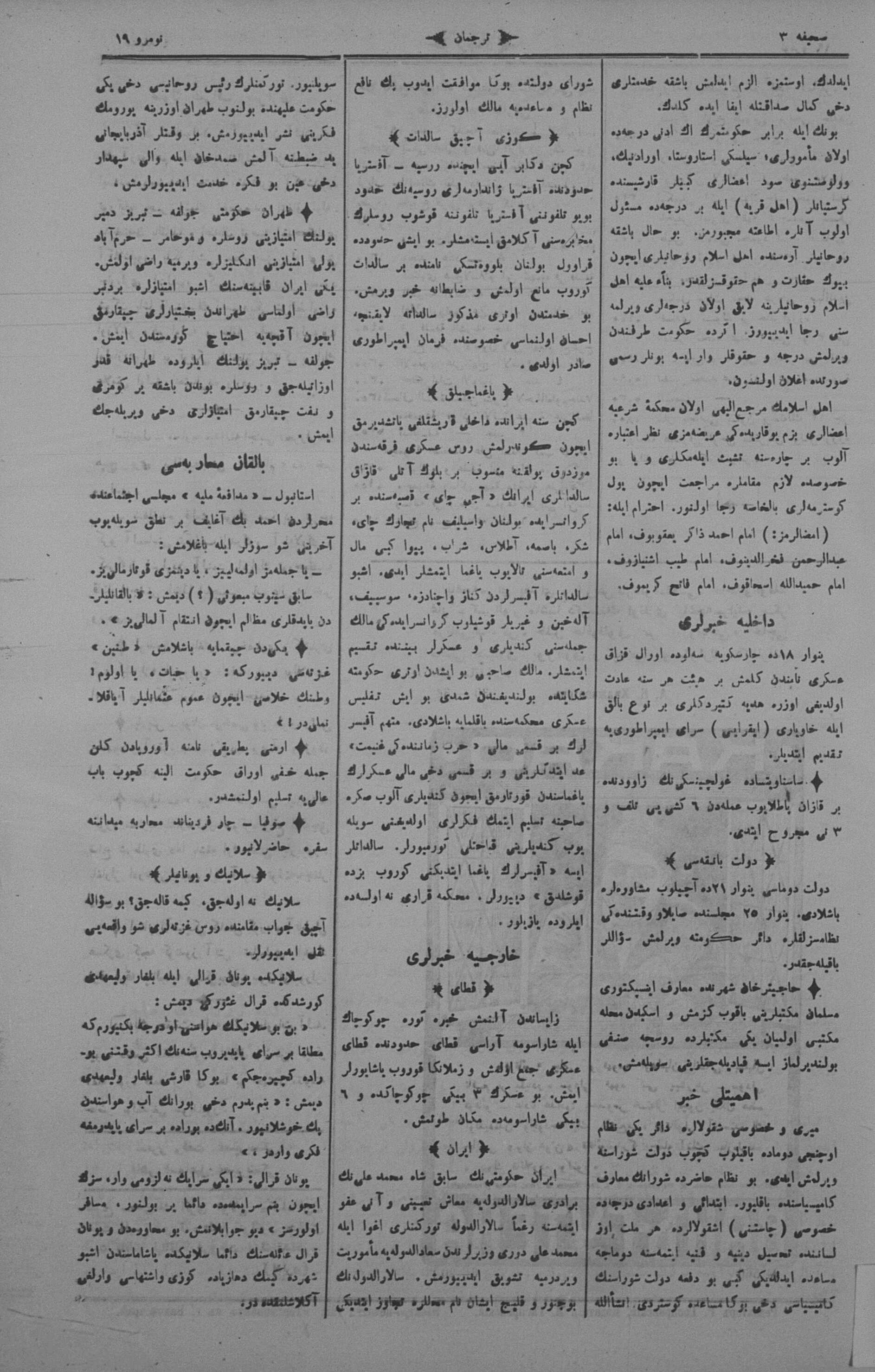 The name of the newspaper changed to Tercüman-ı Ahval-i Zaman in 1905. In 1909, it started to be published under its first name, Tercüman.
