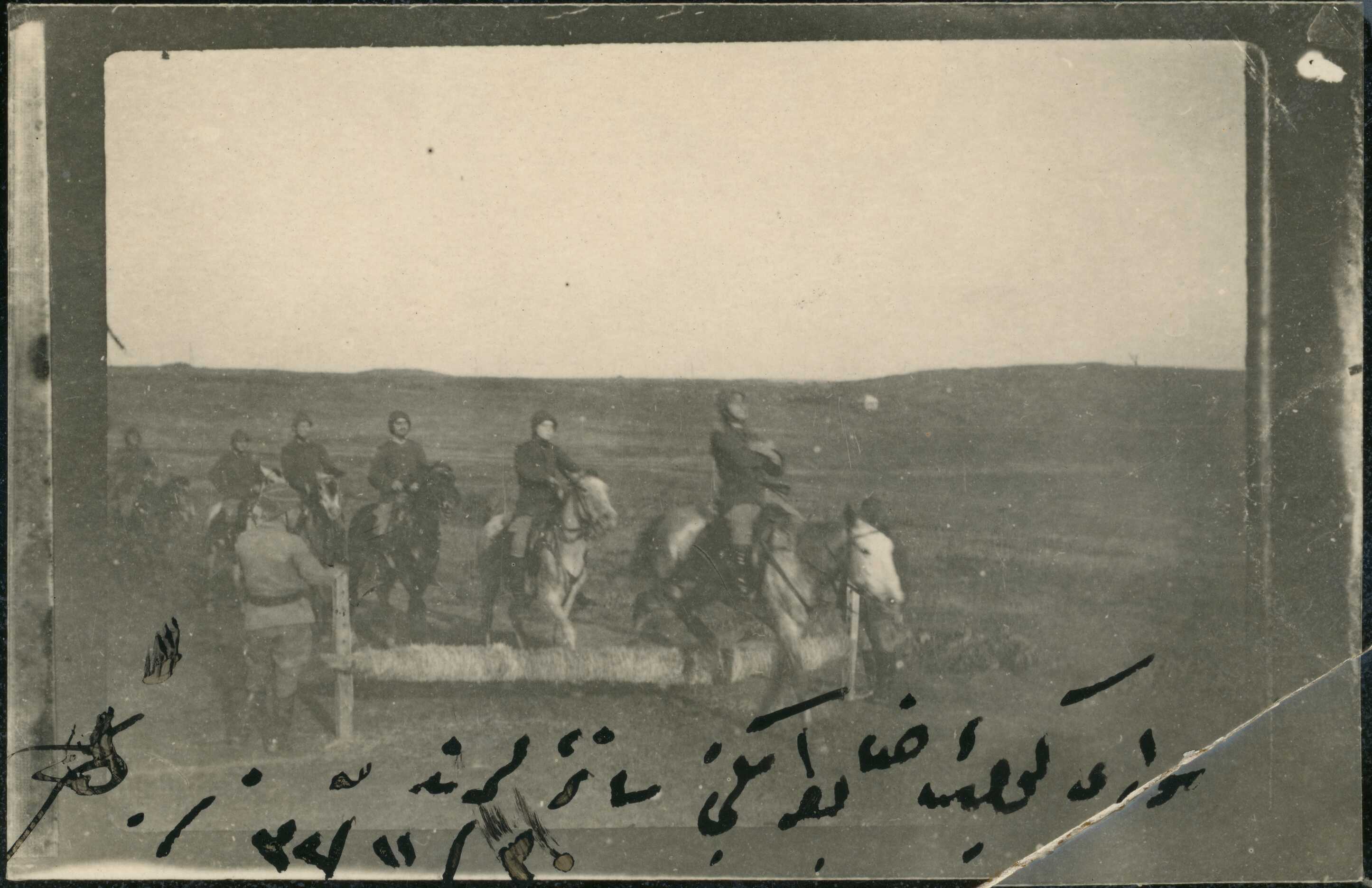 Süvari Küçük Zabit Mektebi Maneji'nde Teğmen Saim Bey ve süvariler