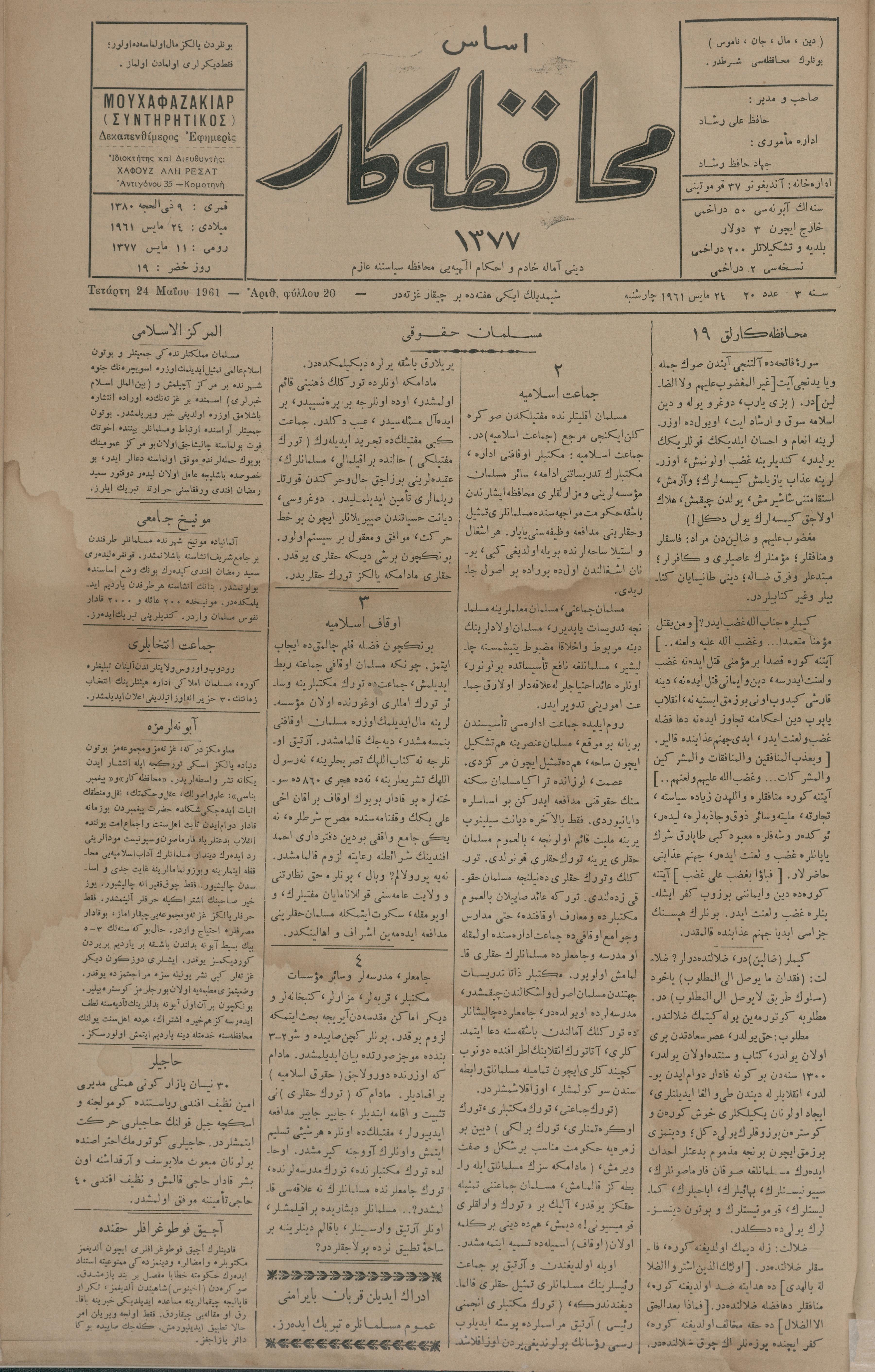Esas muhafazakâr 1377, 24 Mayıs 1961 Sene 3 Aded 20