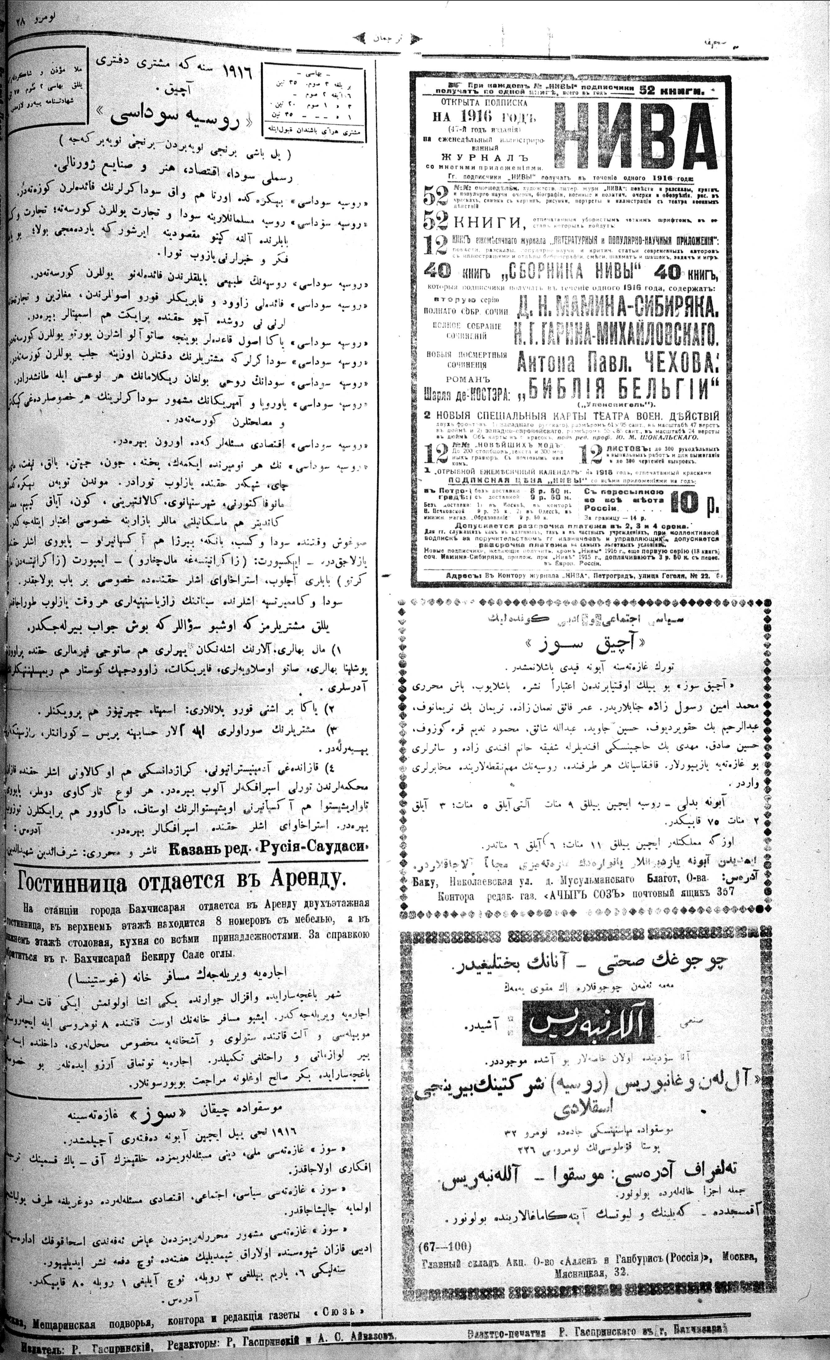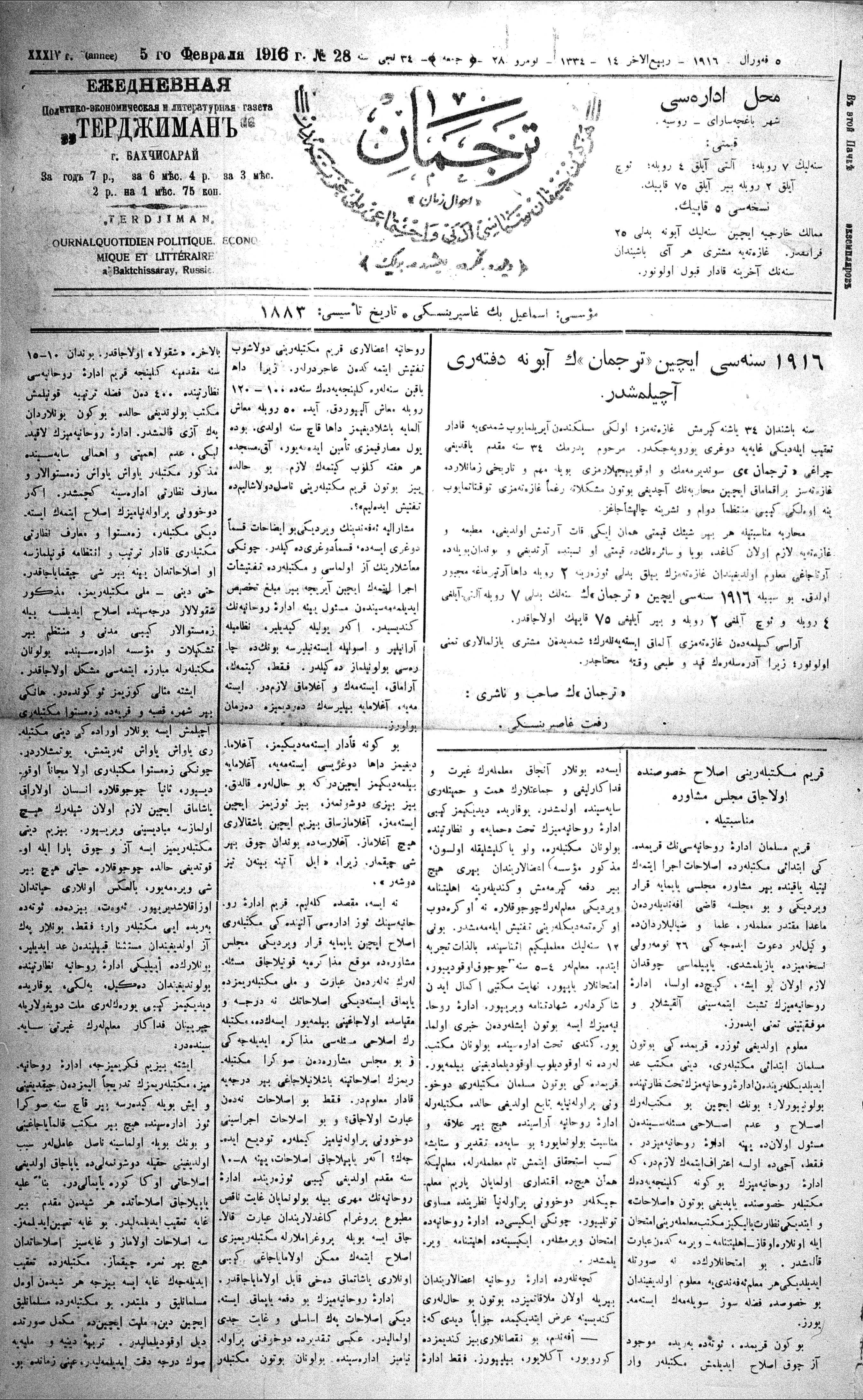 Turkish-Russian newspaper published in Crimea by İsmail Gaspıralı.