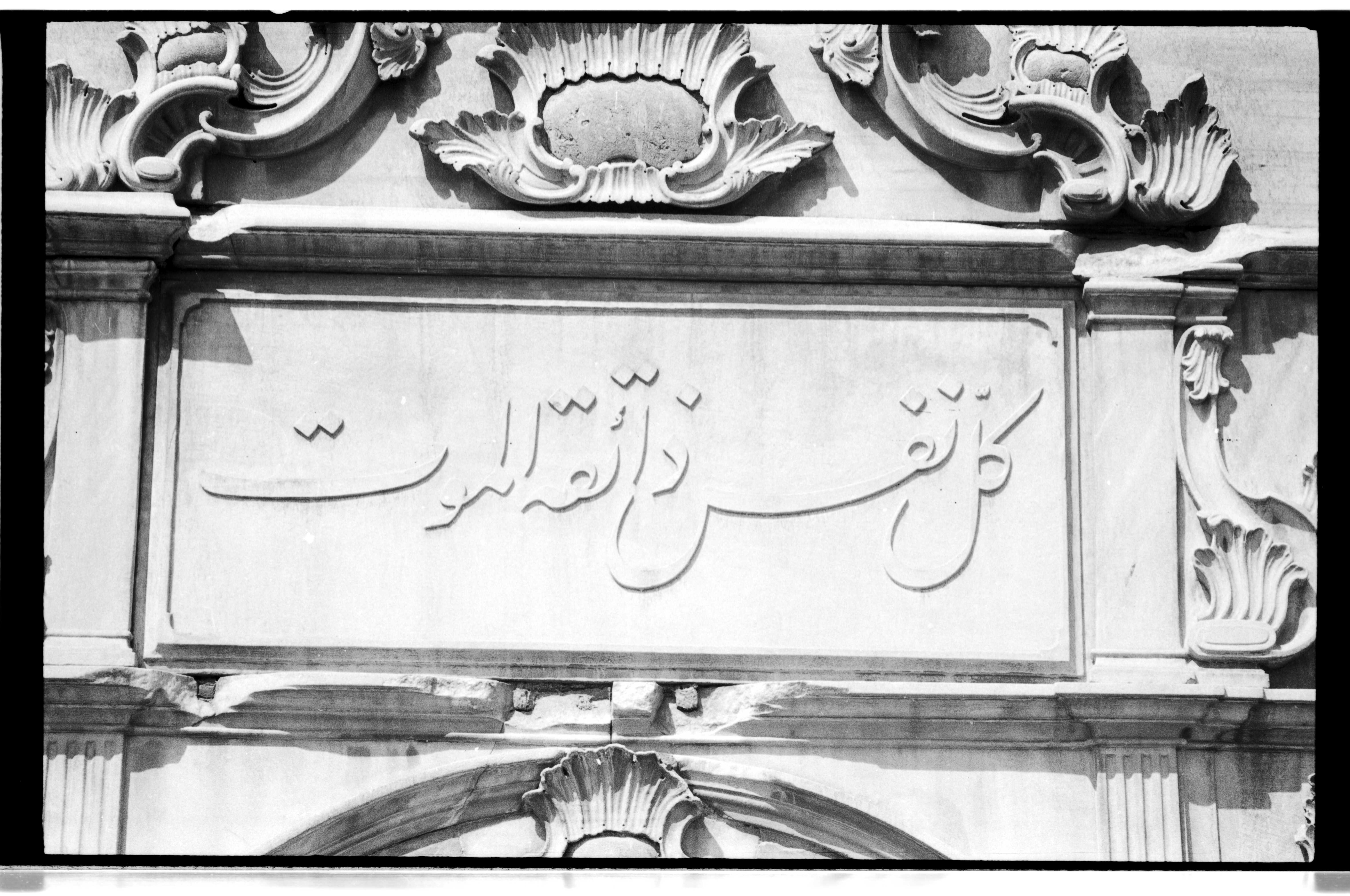 Text on the inscription: "Her nefis ölümü tadacakdır." Kur’ân, Enbiyâ Suresi, 21:35. (http://www.ottomaninscriptions.com/verse.aspx?ref=list&bid=1235&hid=1534)