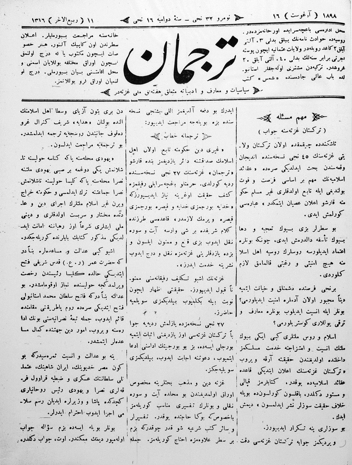 Tercüman, 16 August 1898 Year 16 No 32