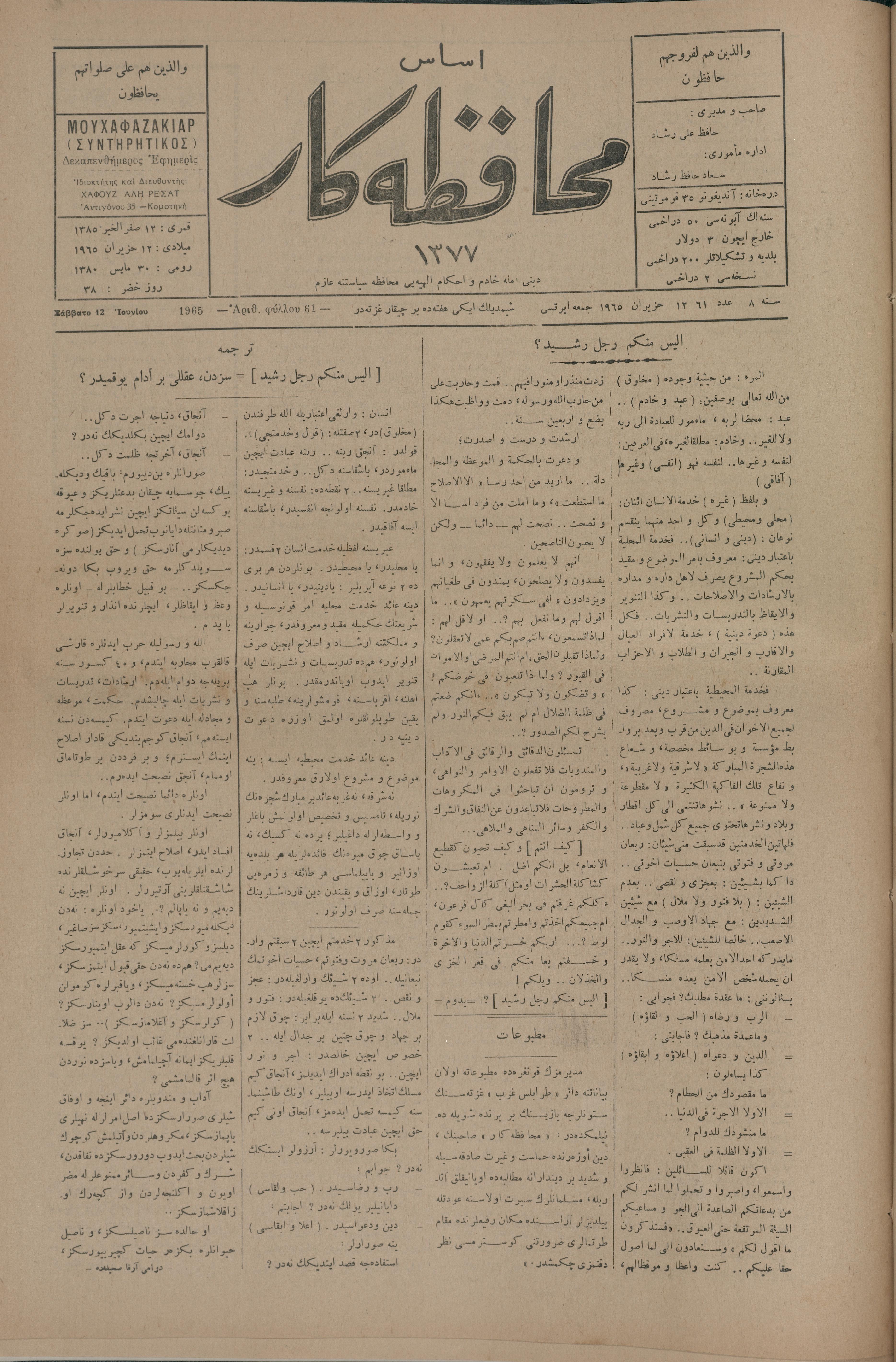 Esas muhafazakâr 1377, 12 Haziran 1965 Sene 8 Aded 61