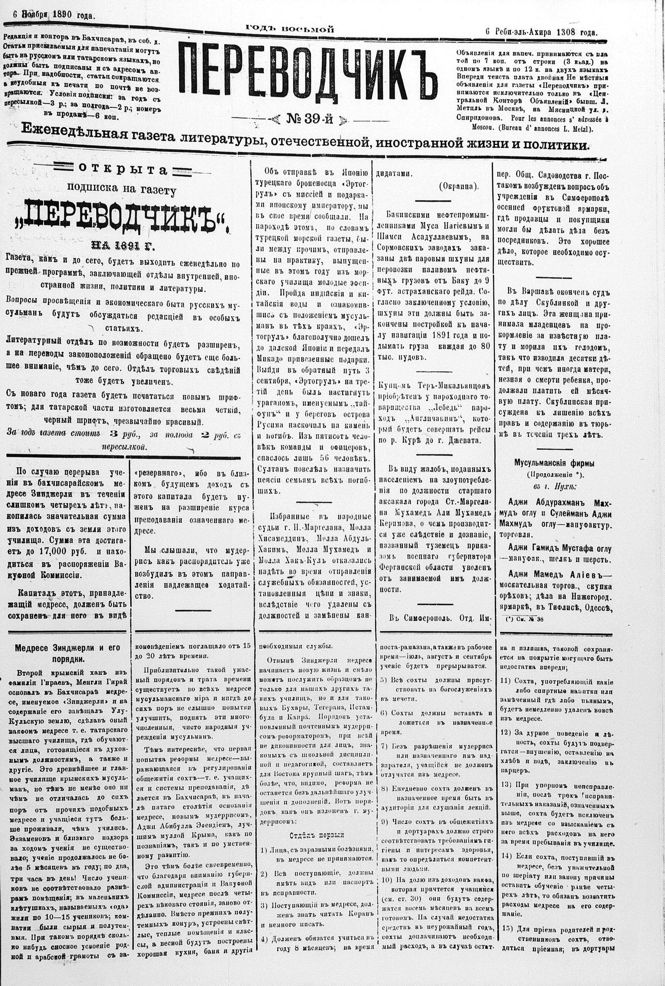 Turkish-Russian newspaper published in Crimea by İsmail Gaspıralı.
