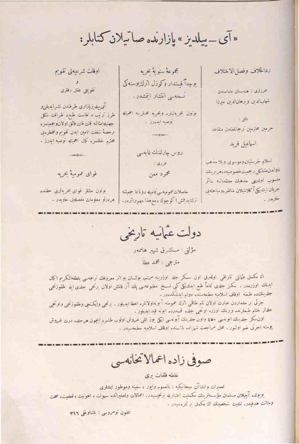 The name of the periodical was published under the following titles in different periods: Donanma: Donanma Cemiyetinin haftalık gazetesi; Donanma: istikbal denizlerdedir; Donanma: şimdilik ayda bir defa neşrolunur; Donanma: ayda bir defa neşr olunur, musavver, ahlaki, edebi, tarihi, fenni mecmuadır.