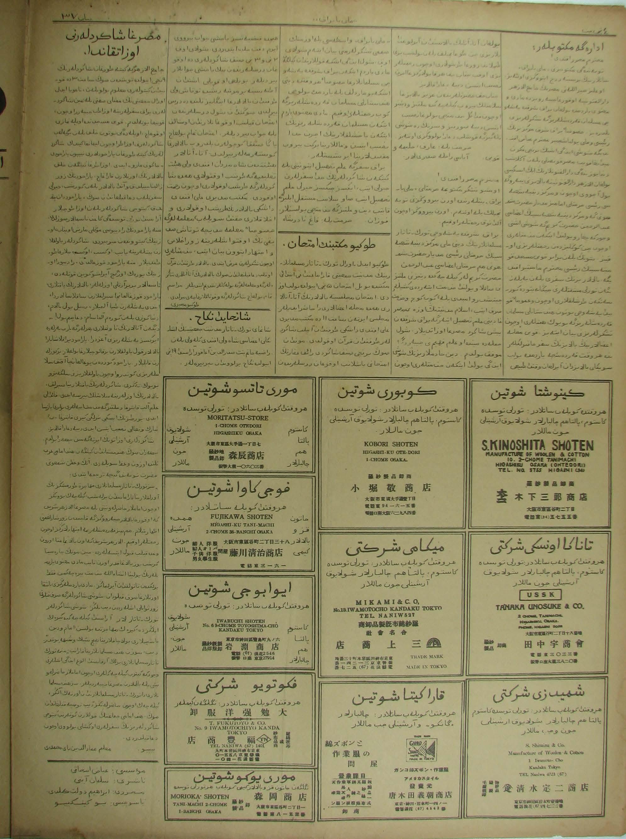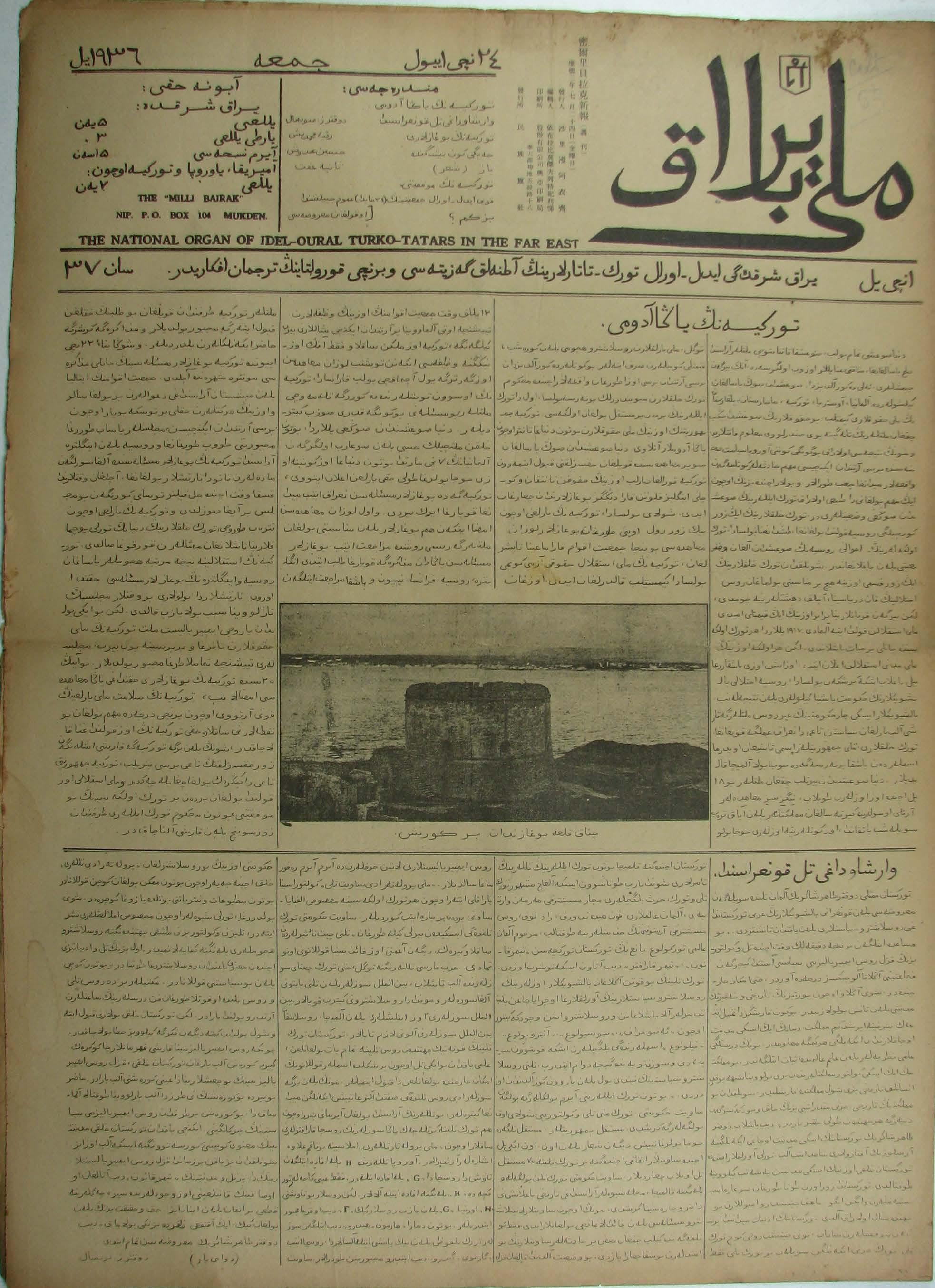 The Milli Bayrak newspaper was printed in Mukden.