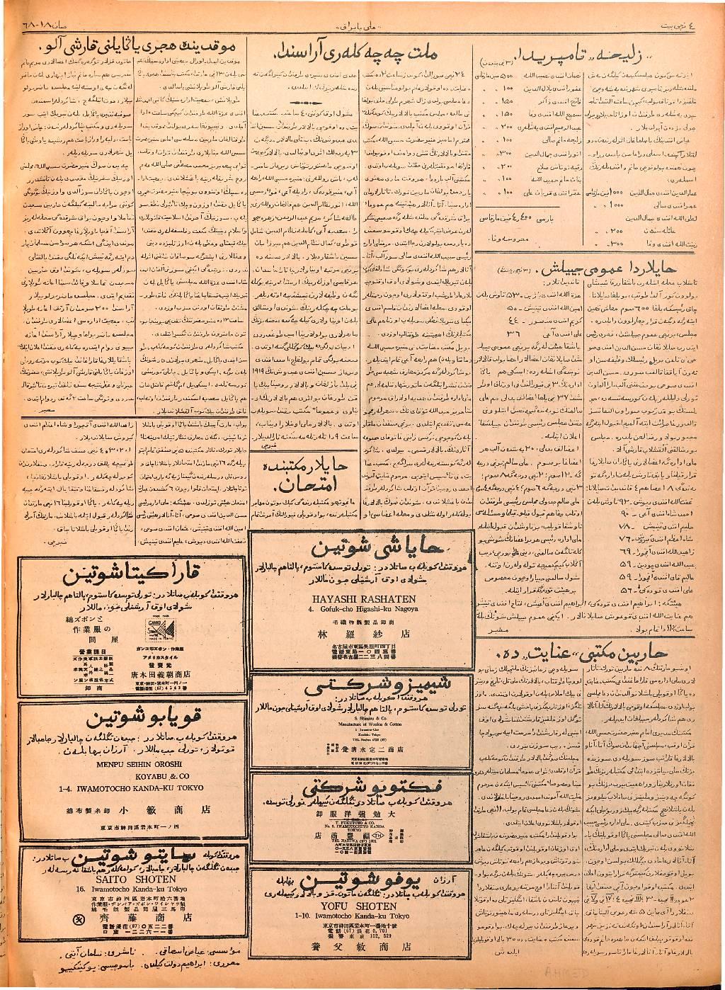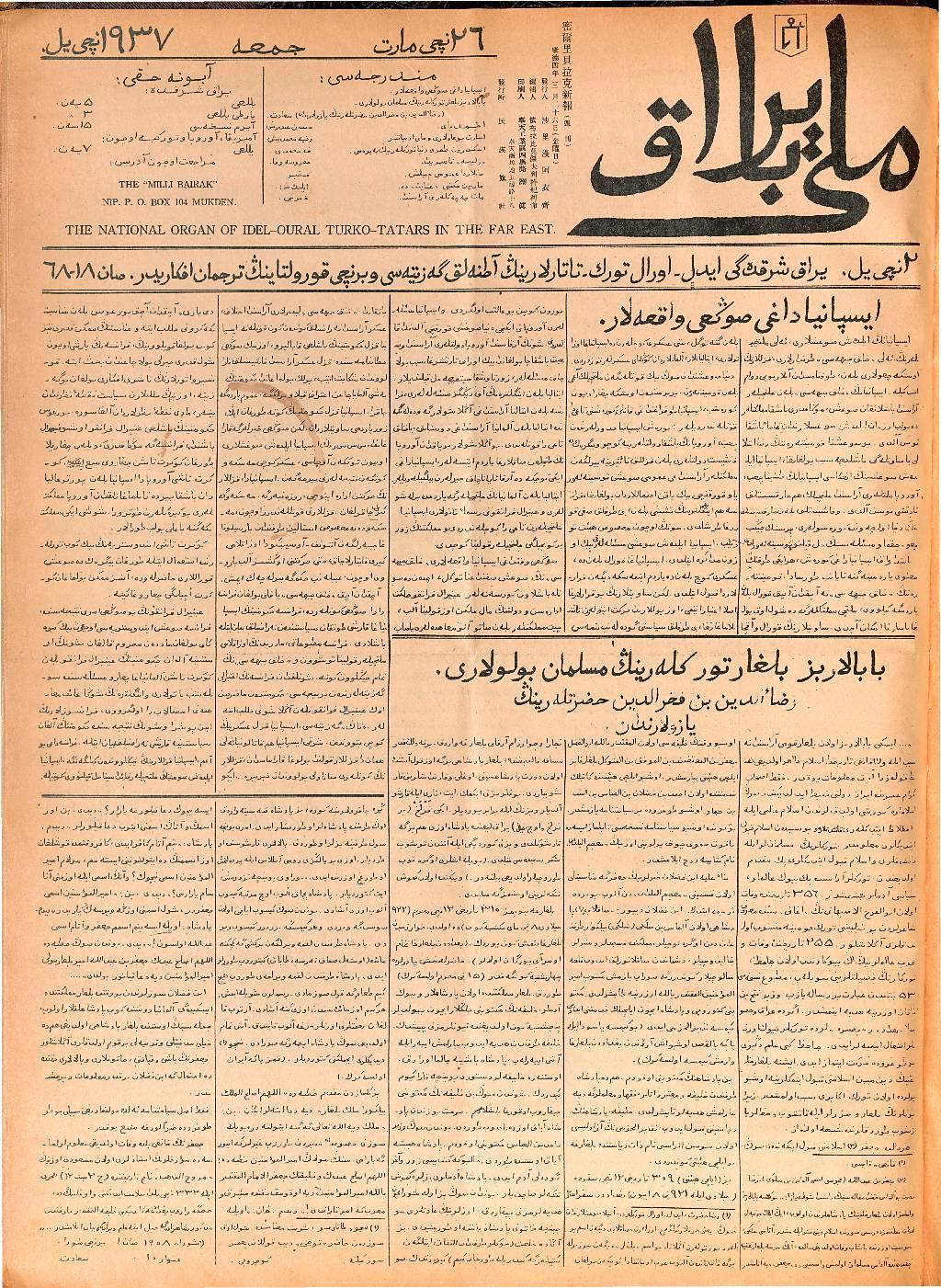 The Milli Bayrak newspaper was printed in Mukden.