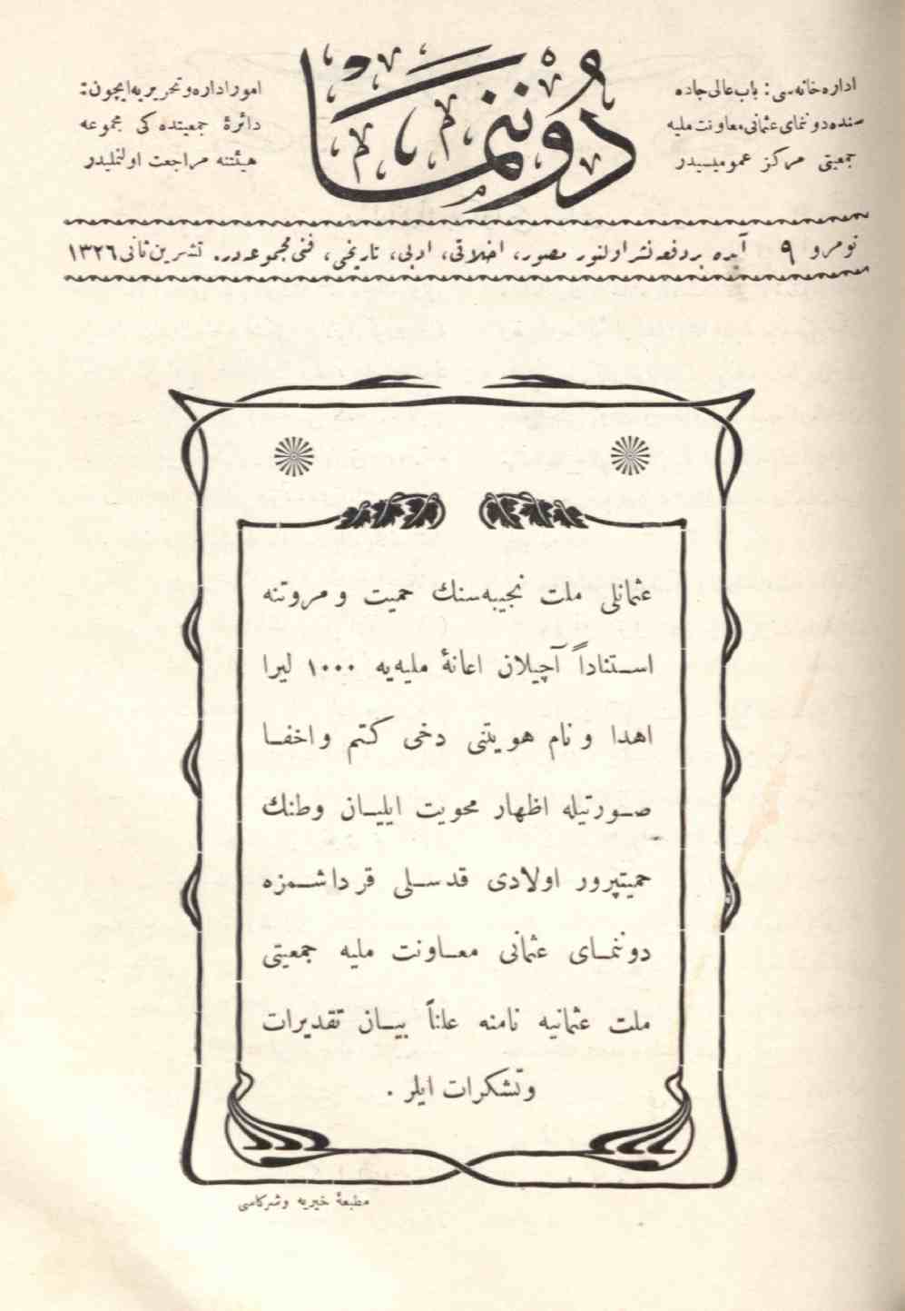 Donanma mecmuası, Teşrin-i Sani 1326 No 9