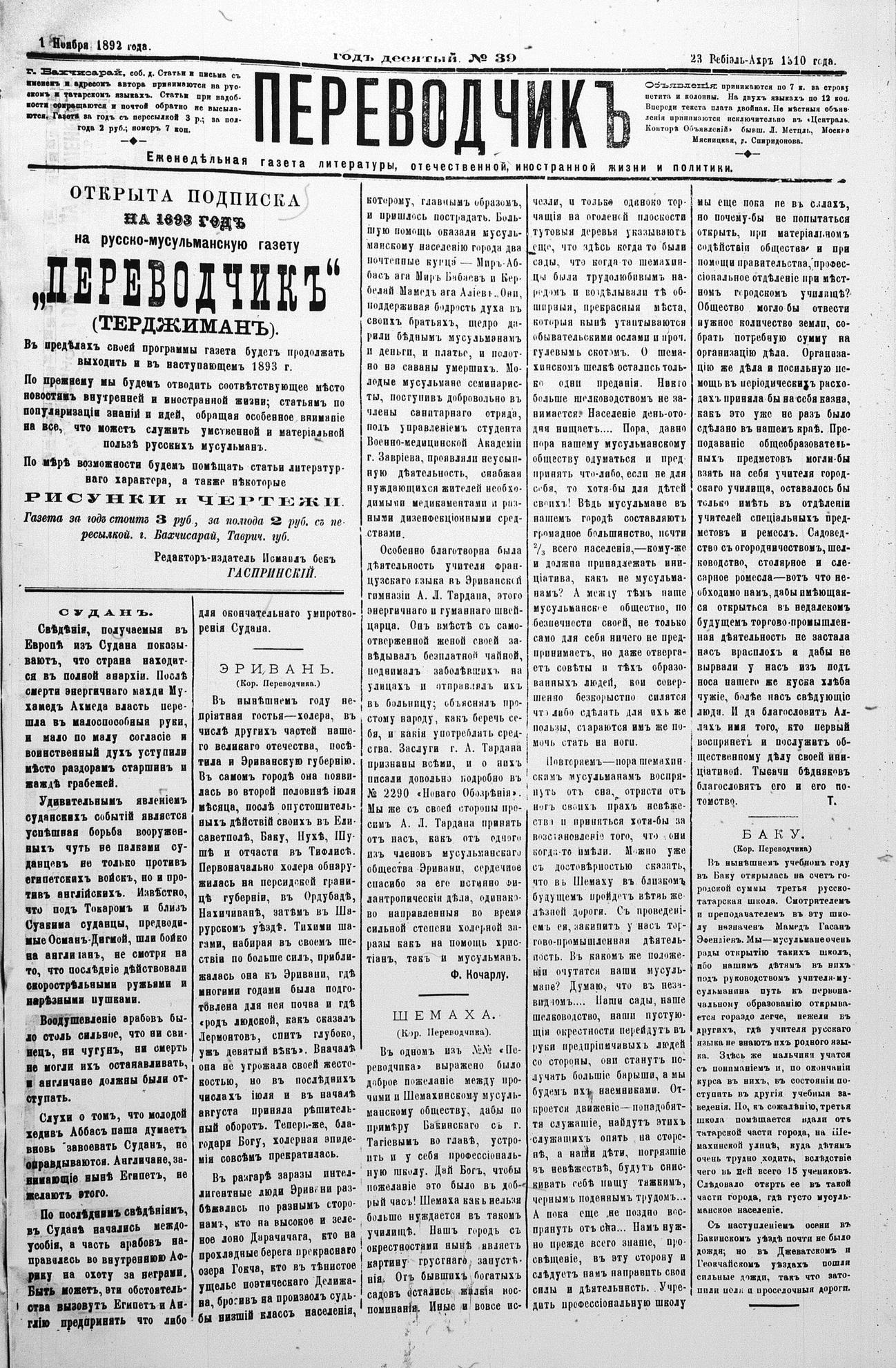 Turkish-Russian newspaper published in Crimea by İsmail Gaspıralı.