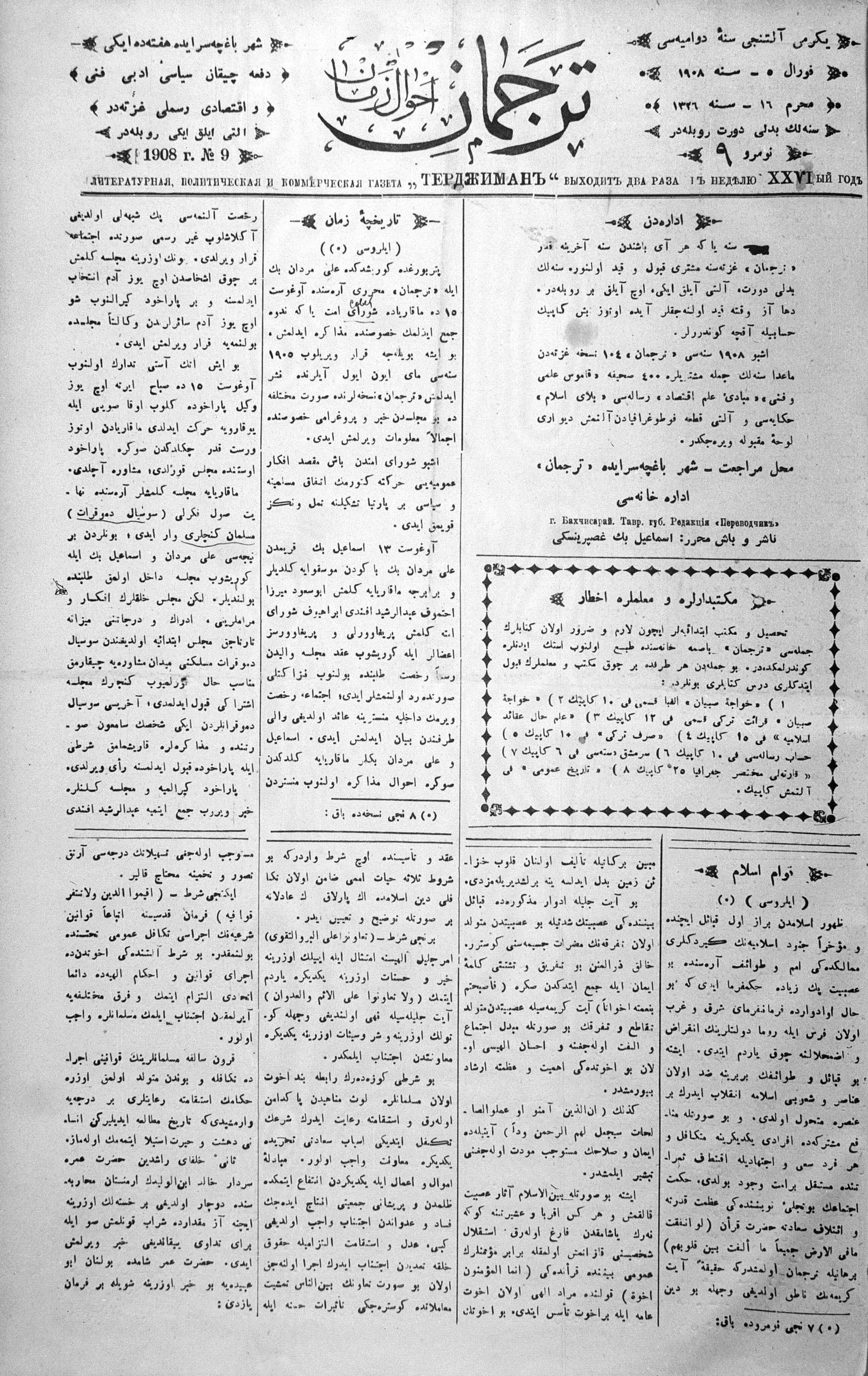 Turkish-Russian newspaper published in Crimea by İsmail Gaspıralı.