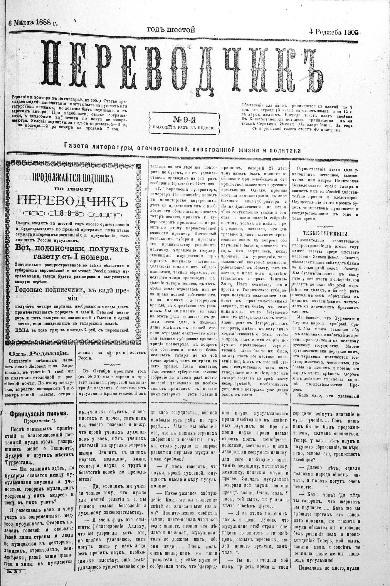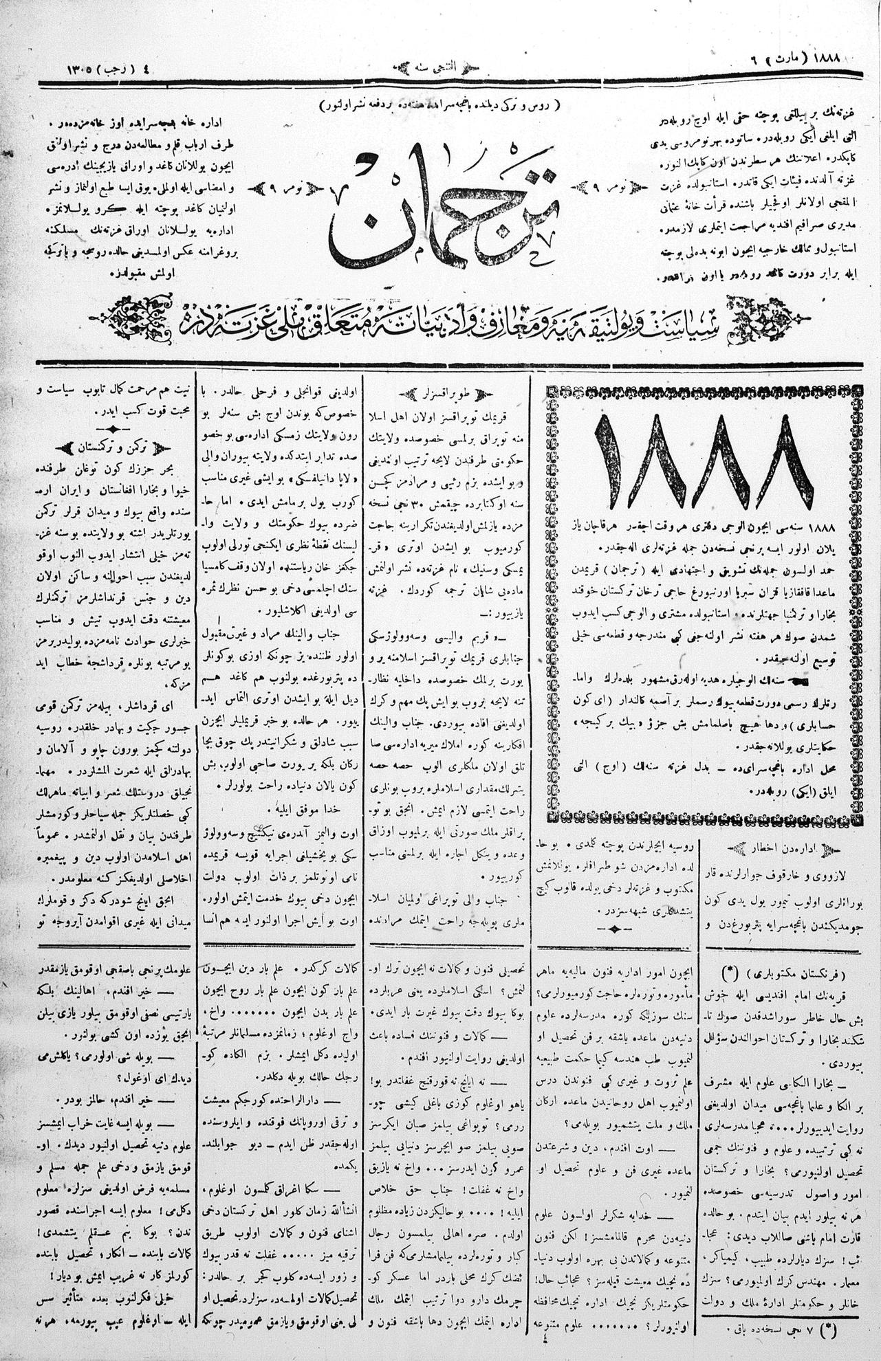 Tercüman, 06 March 1888 Year 6 No 9