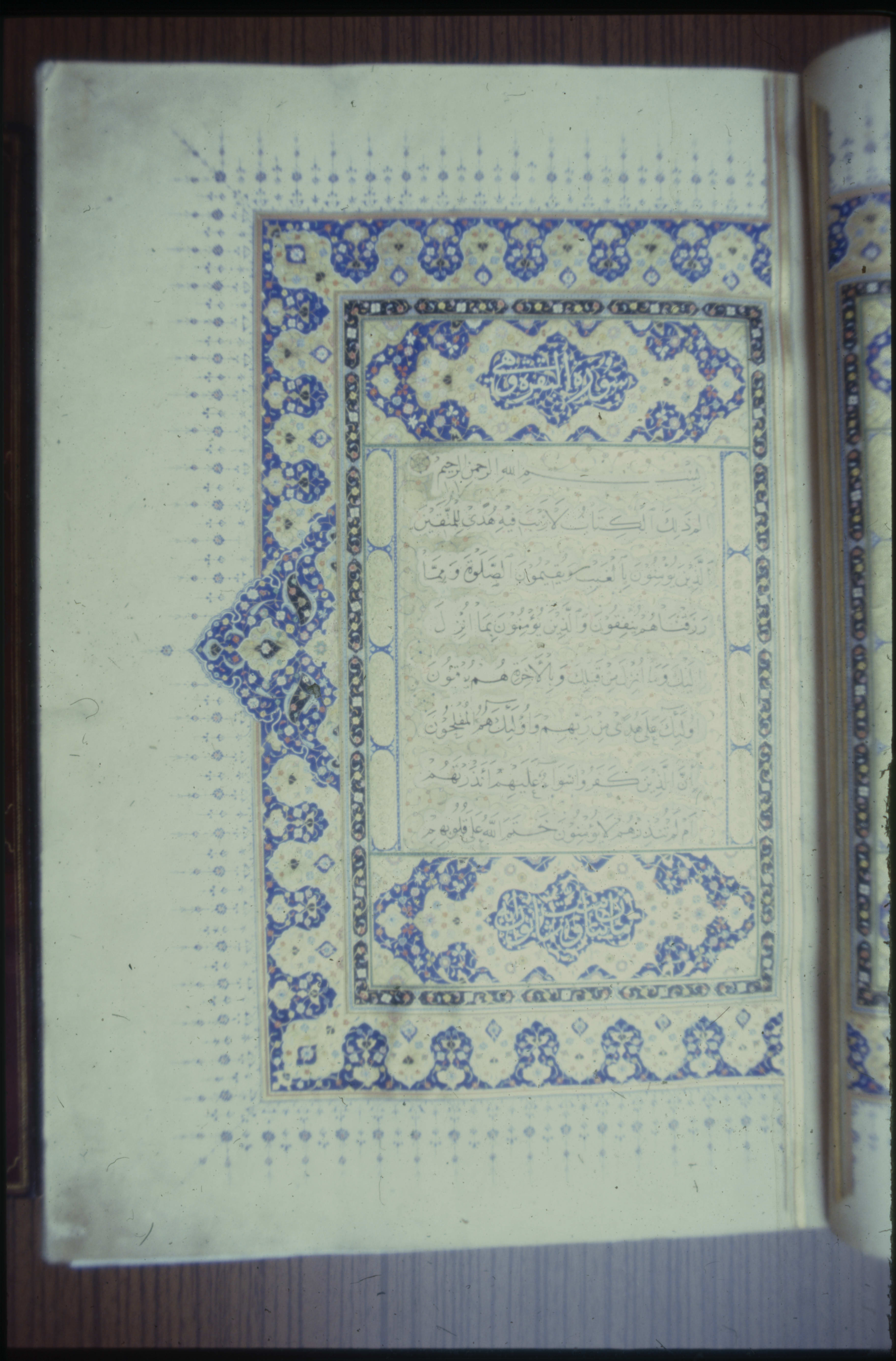 Tezhible süslü Kur'an-ı Kerim'den Bakara Suresi'nin ilk ayetleri