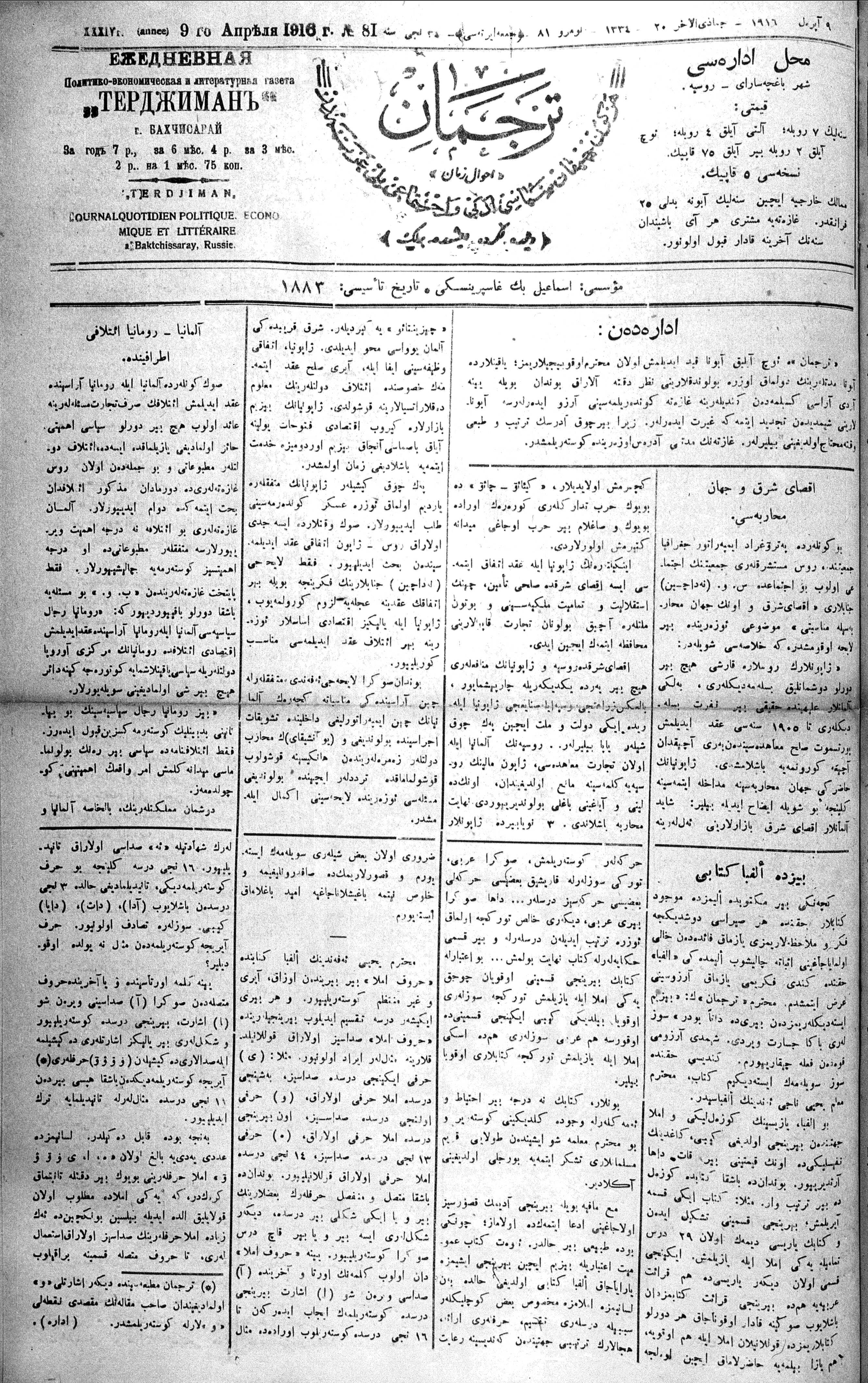 Turkish-Russian newspaper published in Crimea by İsmail Gaspıralı.