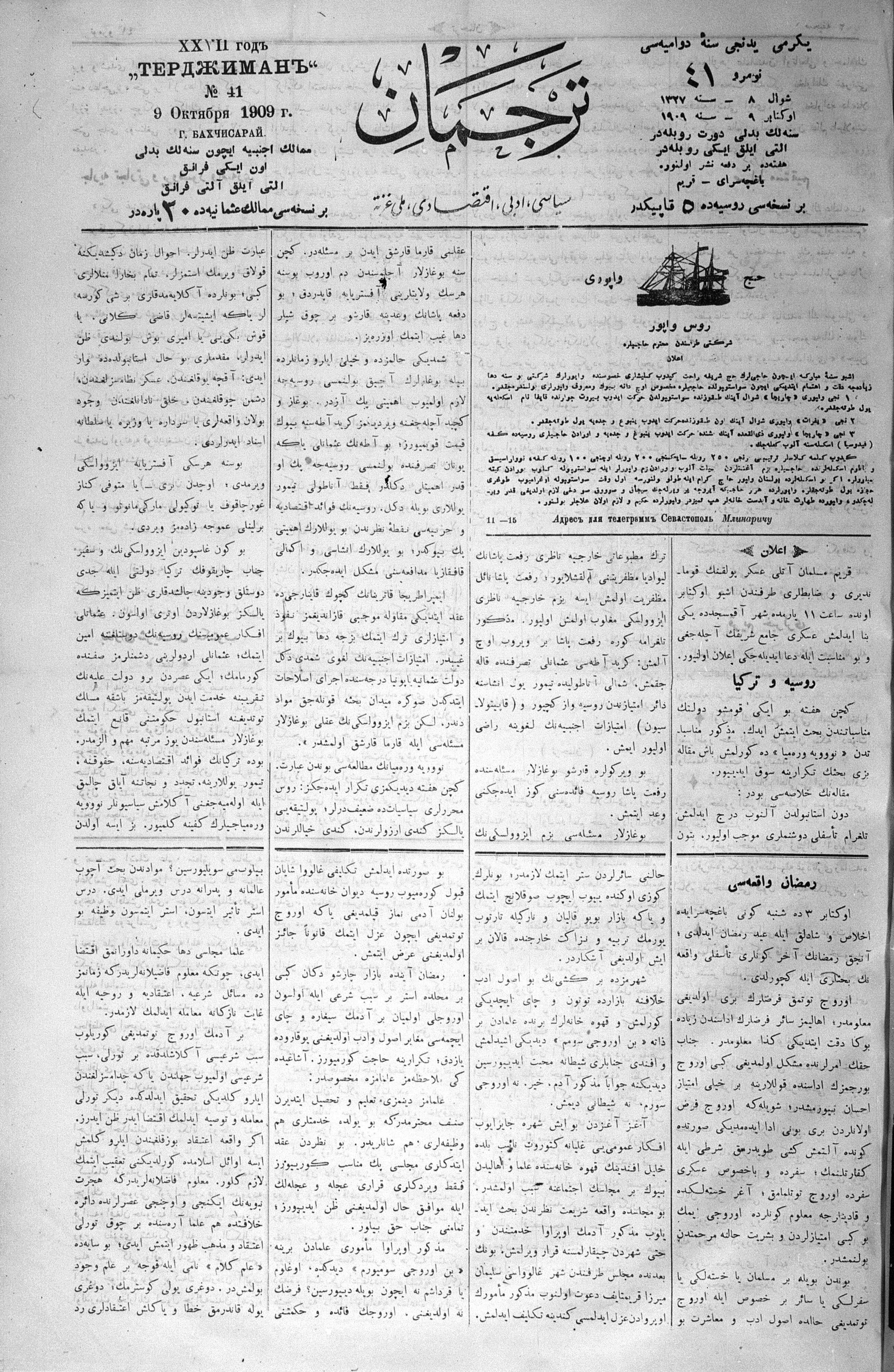 Tercüman, 09 October 1909 Year 27 No 41
