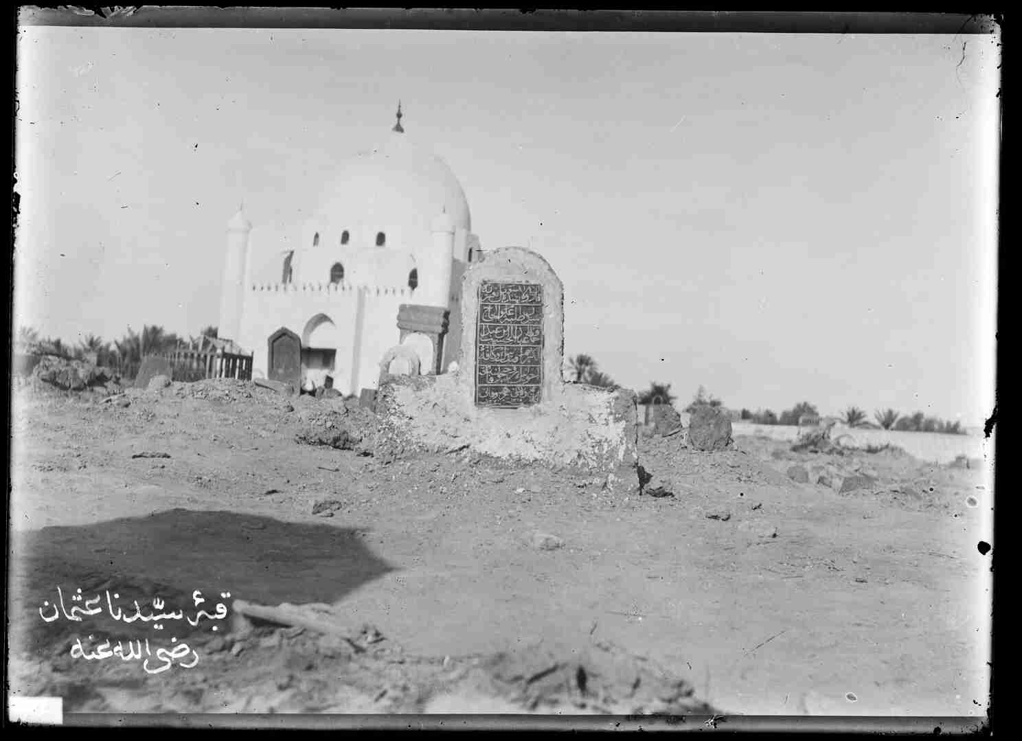 The following phrase is written on the photograph in Ottoman Turkish: Kubbe-i Seyyidina Osman radyallahu anh