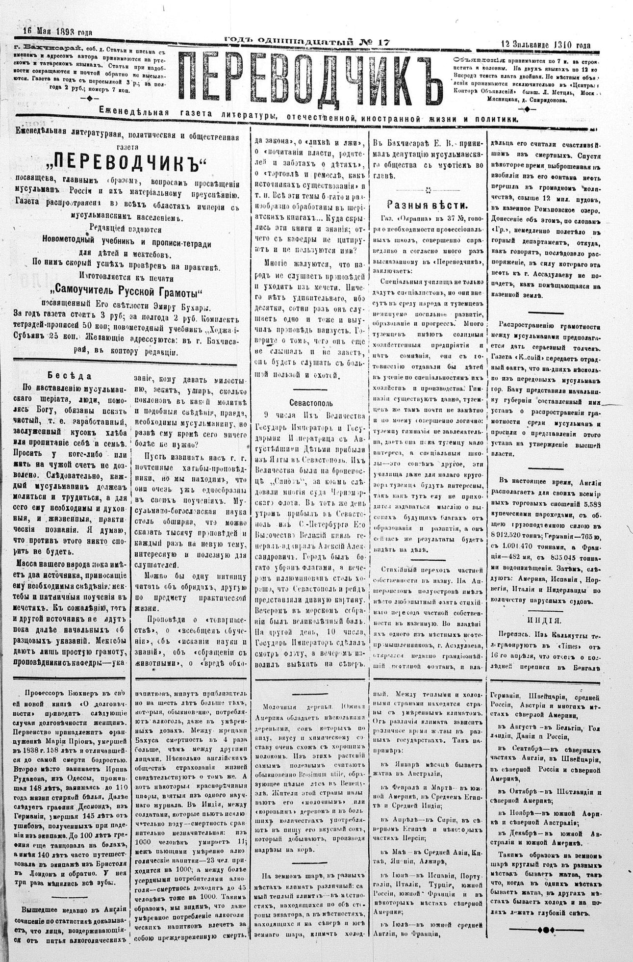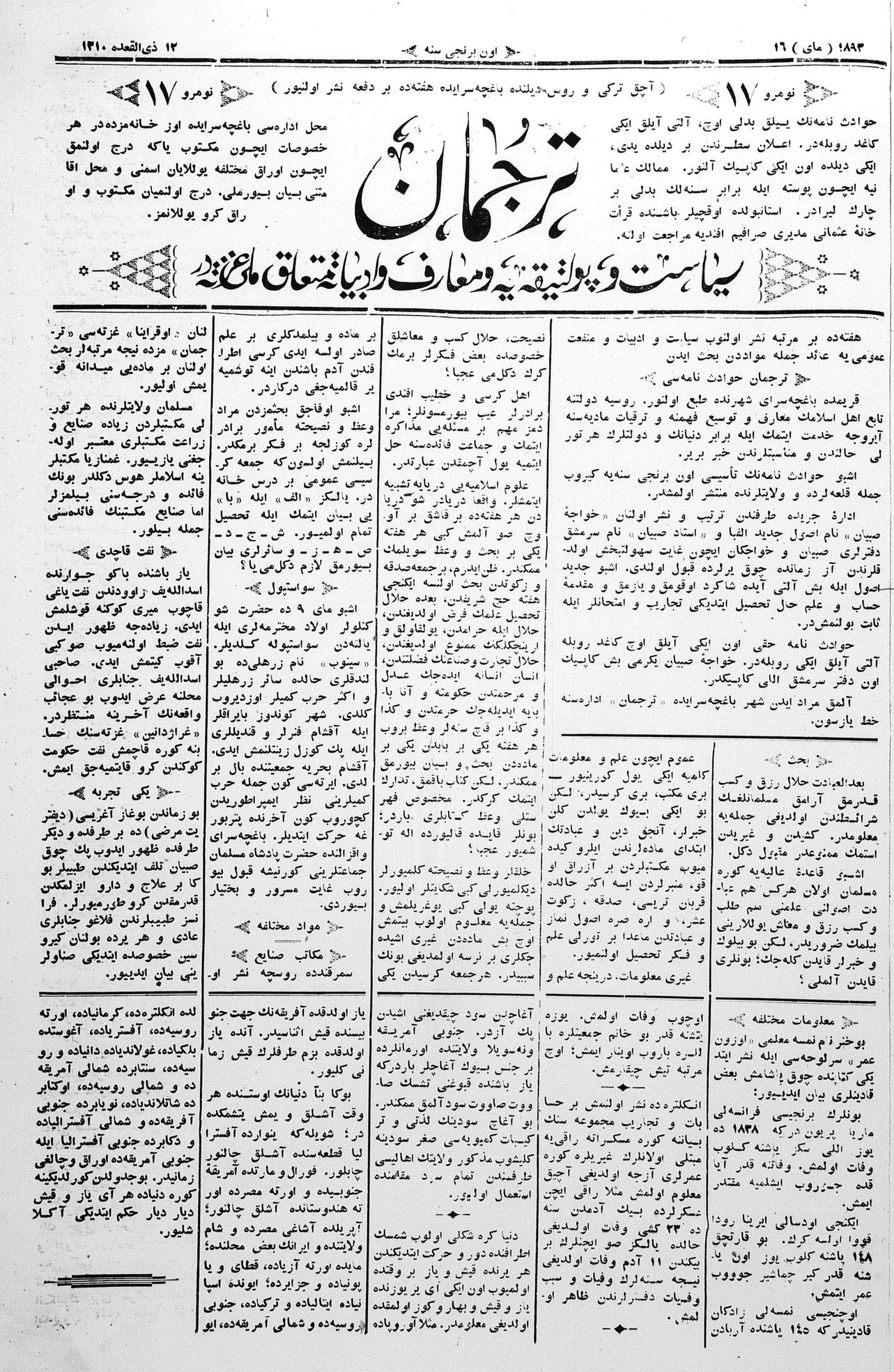 Tercüman, 16 May 1893 Year 11 No 17