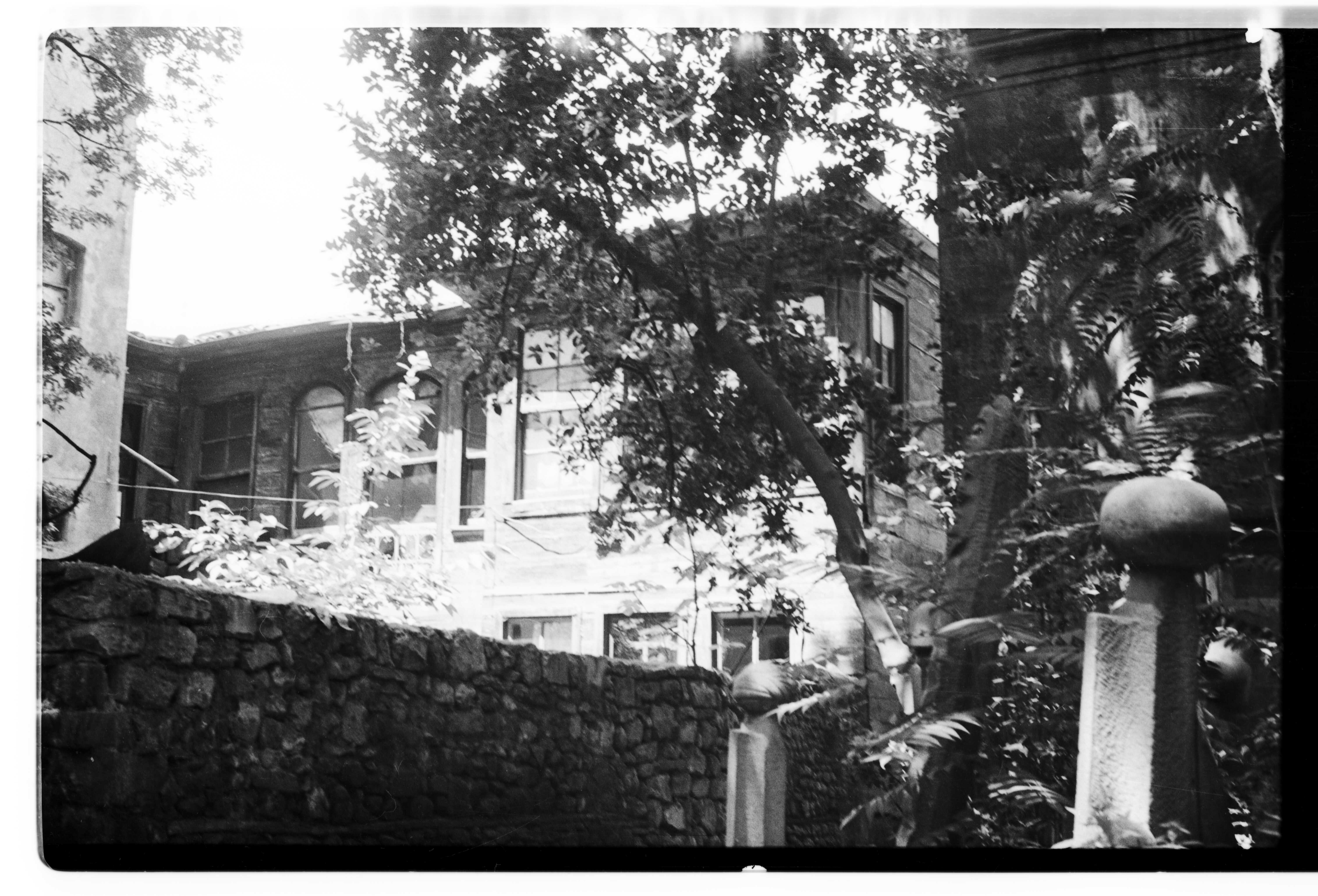 Eski bir evin civarındaki mezar taşları