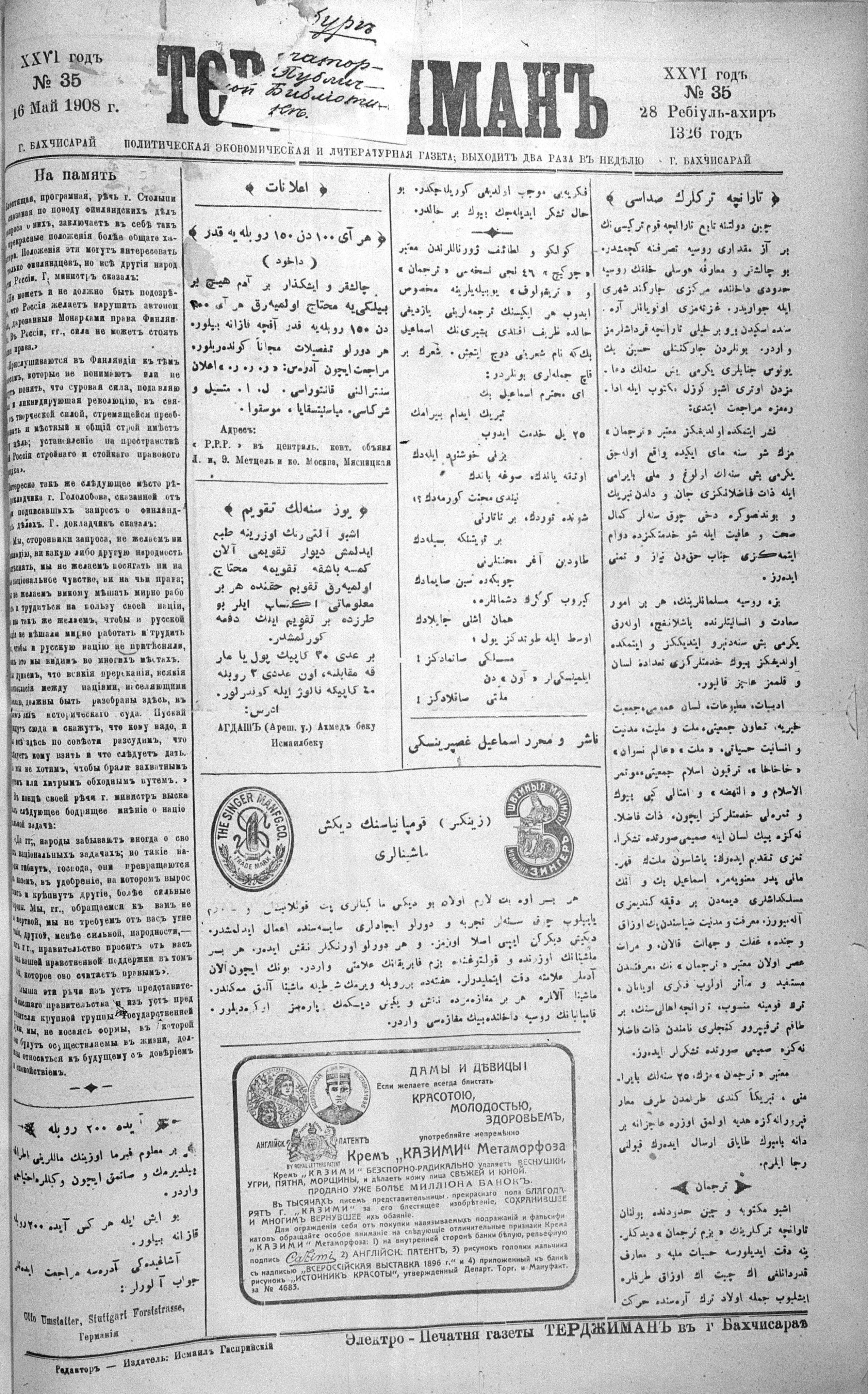 Tercüman, 16 May 1908 Year 26 No 35