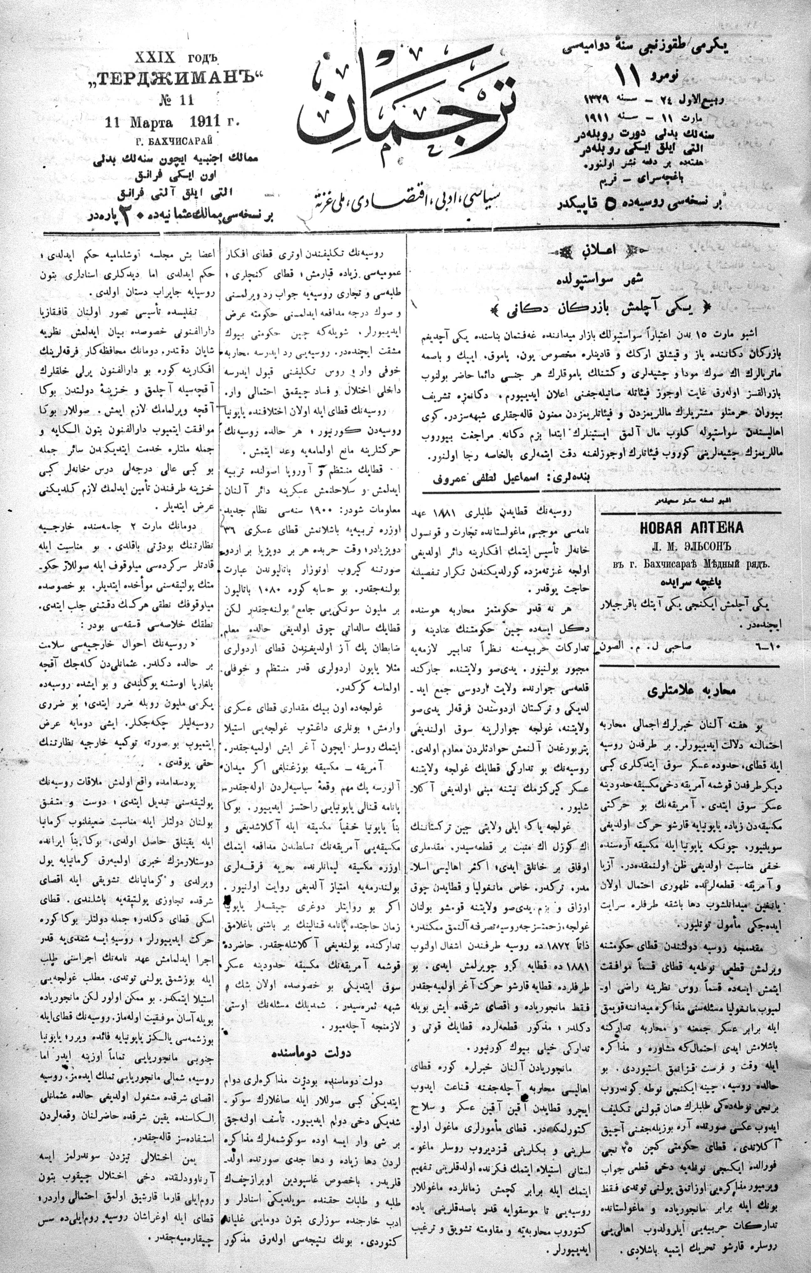 Tercüman, 11 March 1911 Year 29 No 11