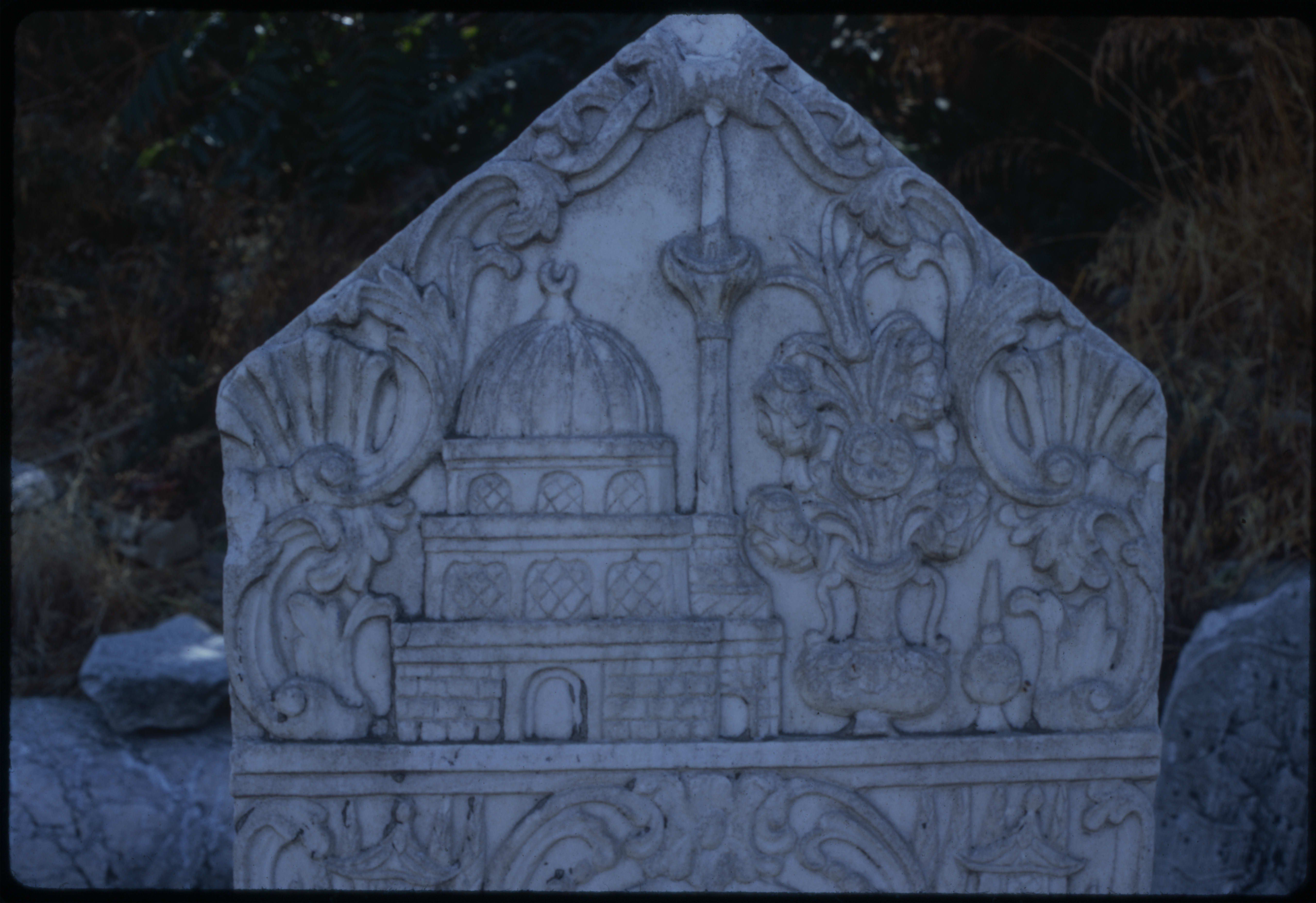 İzmir-Agora'da bir camiyi tasvir eden kıymetli ve orjinal eski bir mezar taşı