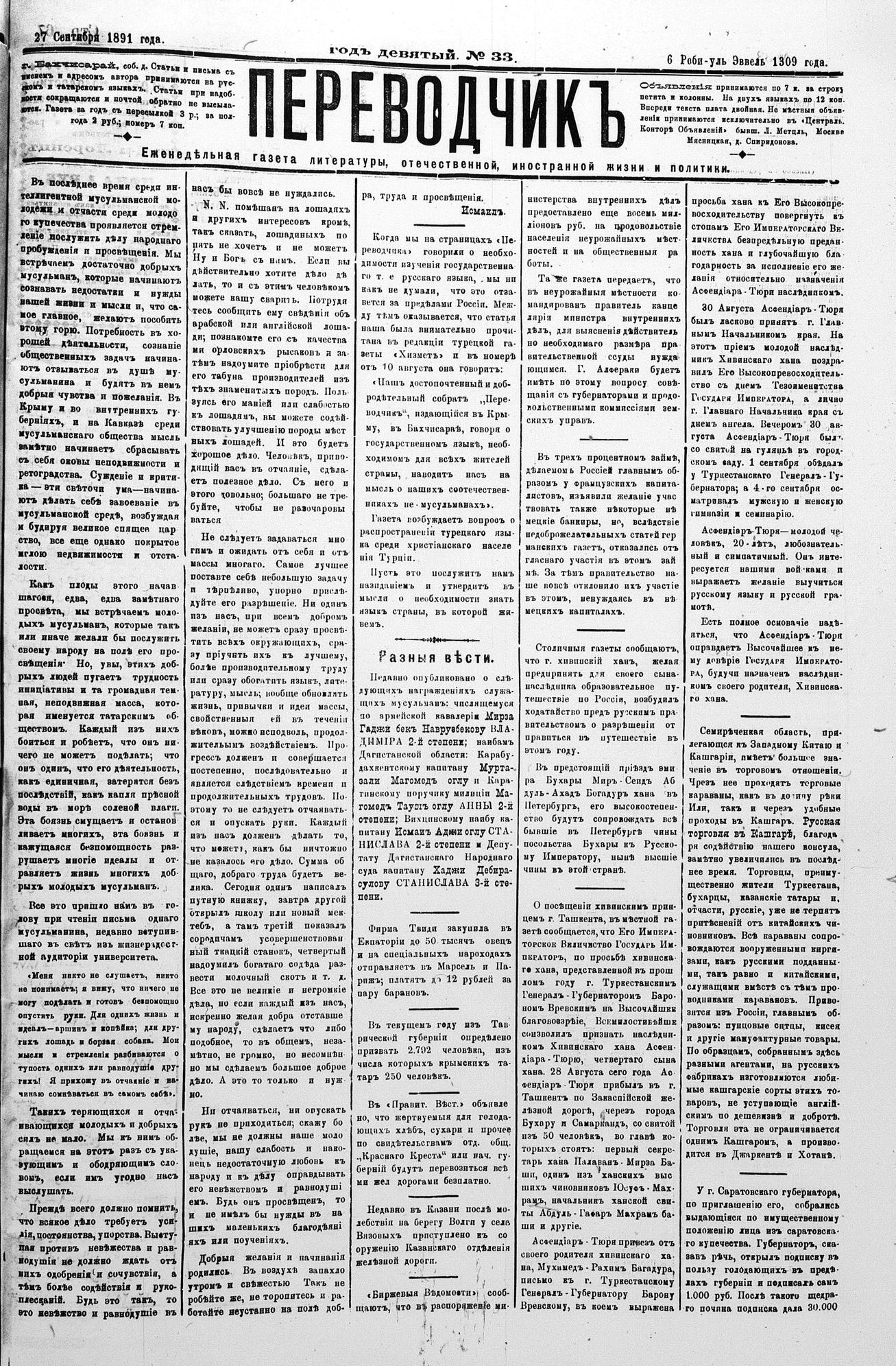 Turkish-Russian newspaper published in Crimea by İsmail Gaspıralı.