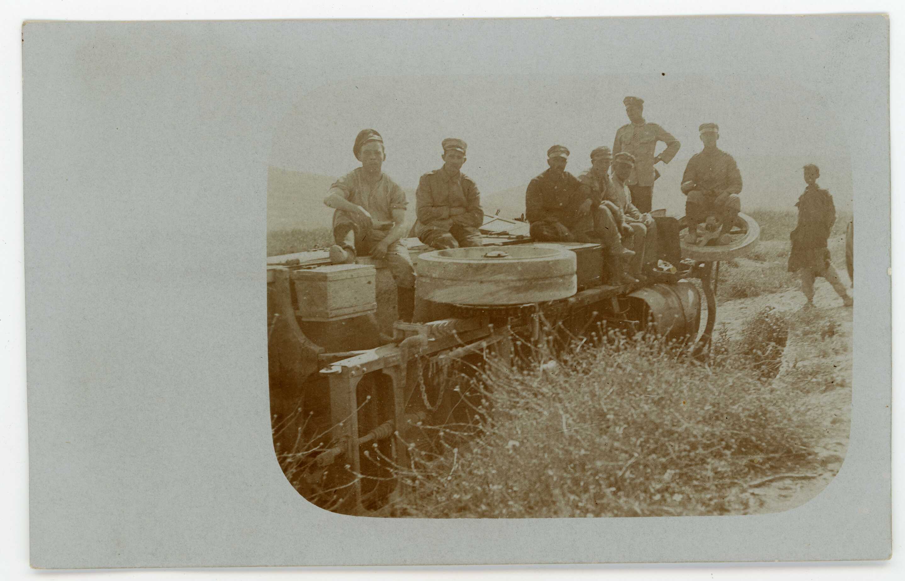 Devrilen askeri bir kamyonetin üzerinde hatıra fotoğrafı çektiren askerler